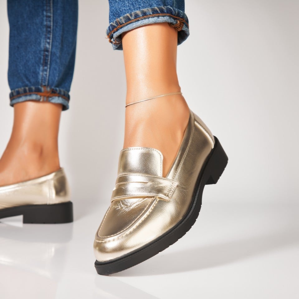 Pantofi dama casual Auriu din Piele Ecologica Lacuita Nasiya A7390