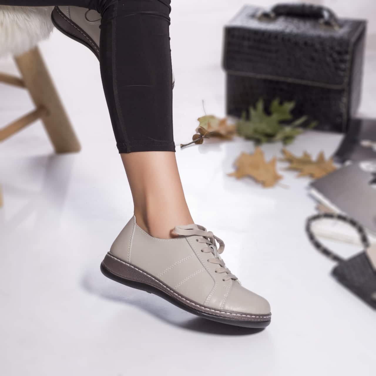 Specification: PANTOFI DAMA CASUAL BETY GRI PIELE NATURALA