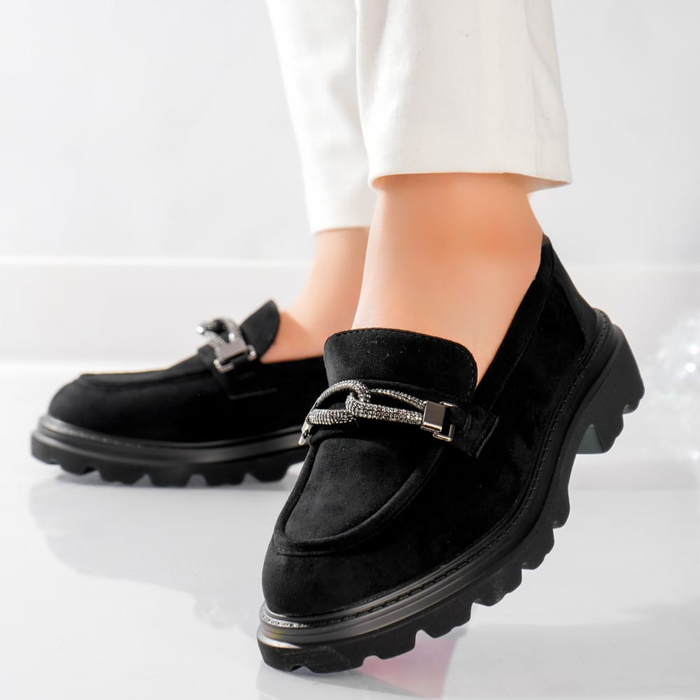 Pantofi dama casual Negri din Piele Ecologica Intoarsa Gesa