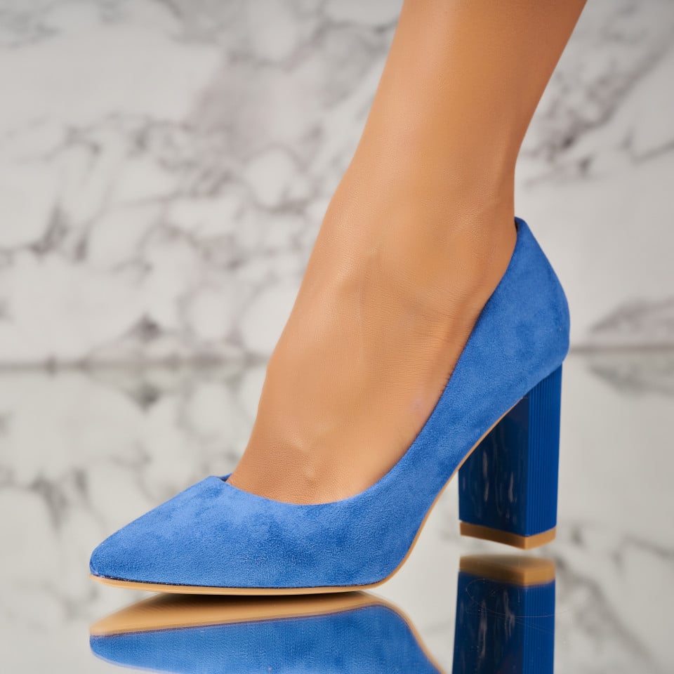 Pantofi dama cu toc Bleumarin din Piele Ecologica Intoarsa Fabiha A3662