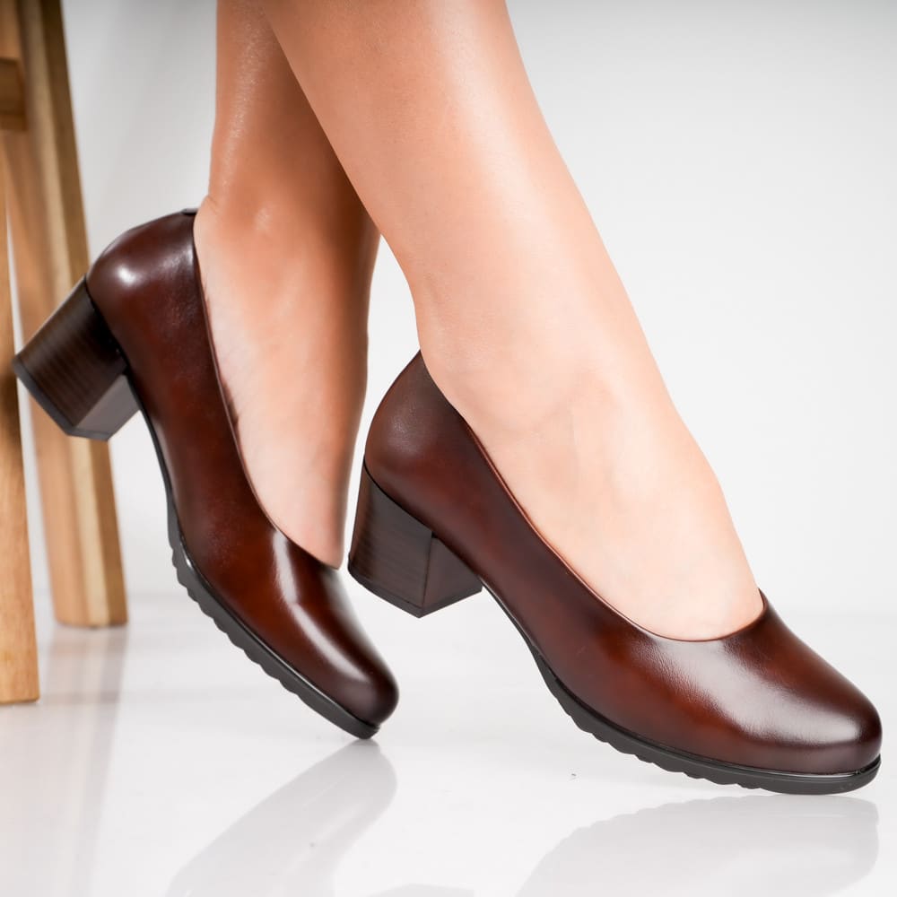 Pantofi dama cu toc Maro din Piele Ecologica Selya