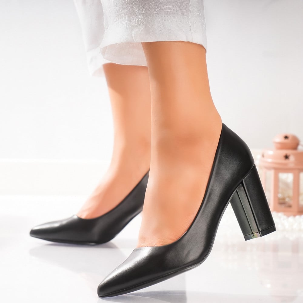 Pantofi dama cu toc Negri din Piele Ecologica Mccarthy