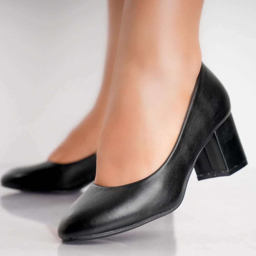 Pantofi dama cu toc Negri din Piele Ecologica Nenaz