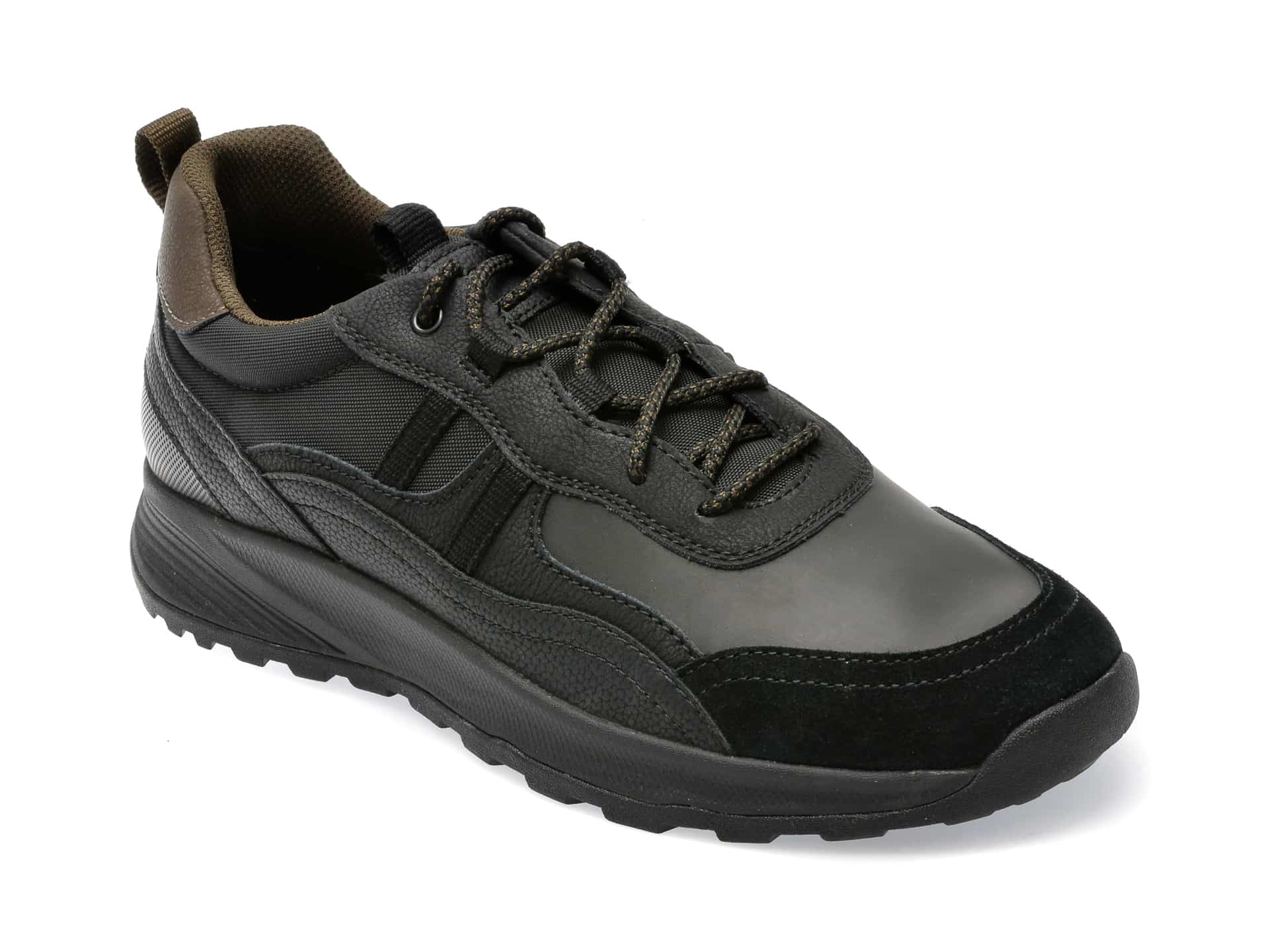 Pentru: Barbati, Brand: Geox, Culoare: Negru, Material exterior: Piele ecologica, Material talpa: Cauciuc termoplastic, Tip inchidere: Siret, Greutate: 394 g. Stoc limitat! Livrare gratuita acasa si in Easybox pentru comenzi de minim 199 RON! Retur gratuit de la tine acasa sau in Easybox!