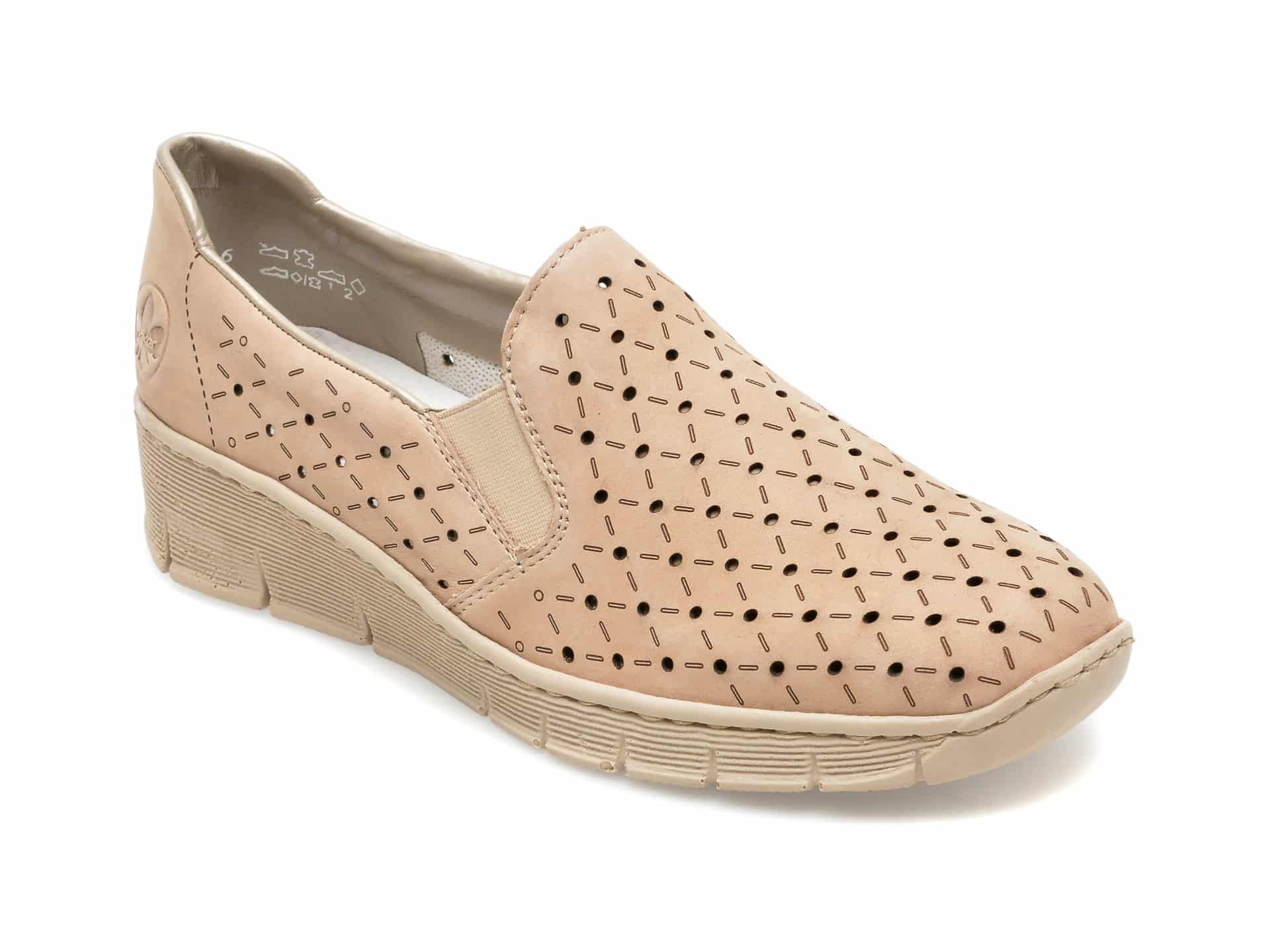 Pentru: Femei, Brand: Rieker, Culoare: Bej, Material exterior: Piele naturala, Material talpa: pvc, Tip inchidere: Slip-on, Greutate: 216 g. Stoc limitat! Livrare gratuita acasa si in Easybox pentru comenzi de minim 199 RON! Retur gratuit de la tine acasa sau in Easybox!