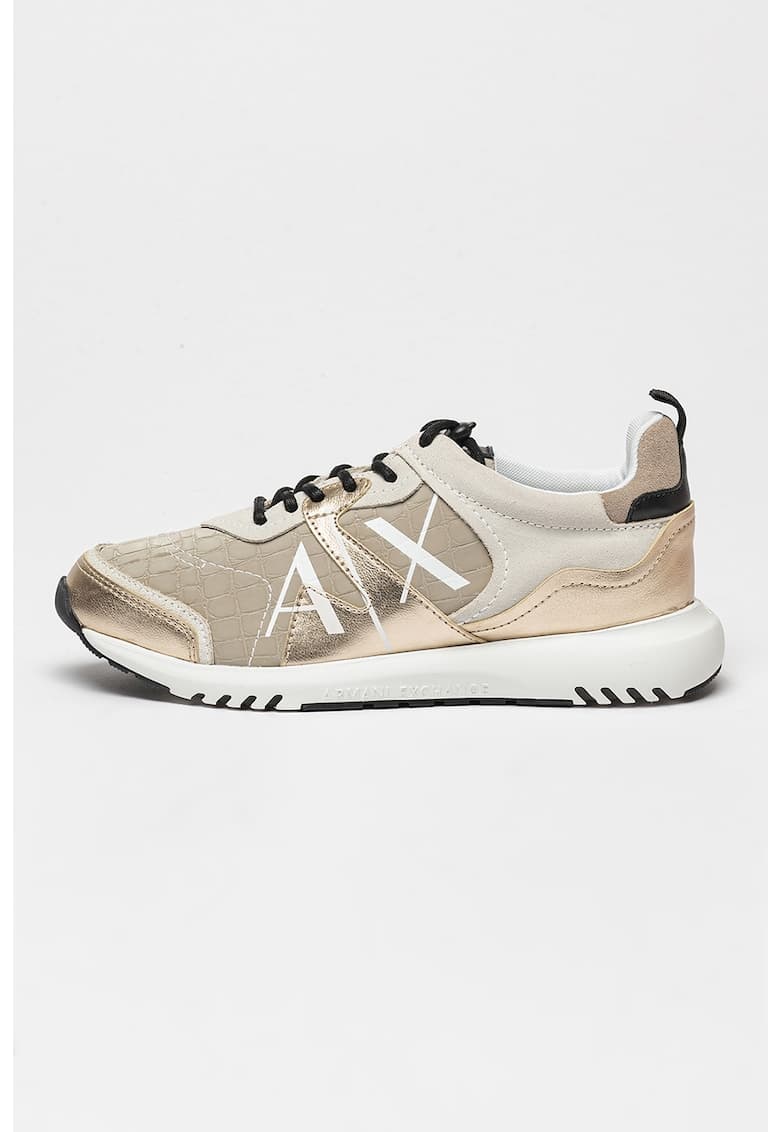 Pantofi sport cu imprimeu logo si insertii din piele