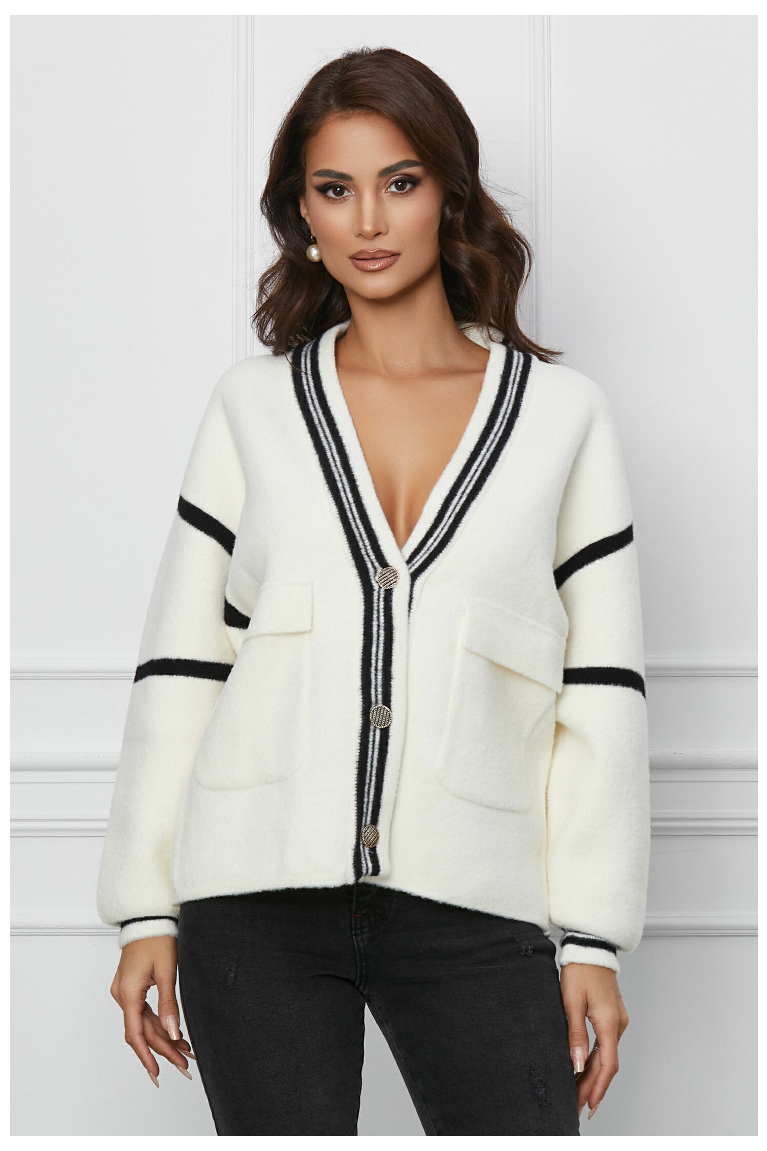 Pulover casual pufos. Are decolteu in V, maneci lungi, croi lejer, buzunare functionamle si se inchide cu nasturi. Pulover casual Decolteu in V Maneci lungi Croi lejer Buzunare functionale Se inchide cu nasturi Material: Tricot Instructiuni de intretinere: *Va rugam verificati eticheta produsului inainte de curatare! *Pozitia tiparului imprimeului poate fi diferita datorita taierii. *Modelul are inaltimea de 174 cm. *Va rugam sa retineti ca o usoara discrepanta de culoare ar trebui sa fie acceptabila datorita luminii si luminozitatii ecranului. *Va rugam verificati ghidul de marimi, in cm, pentru a alege corect marimea.