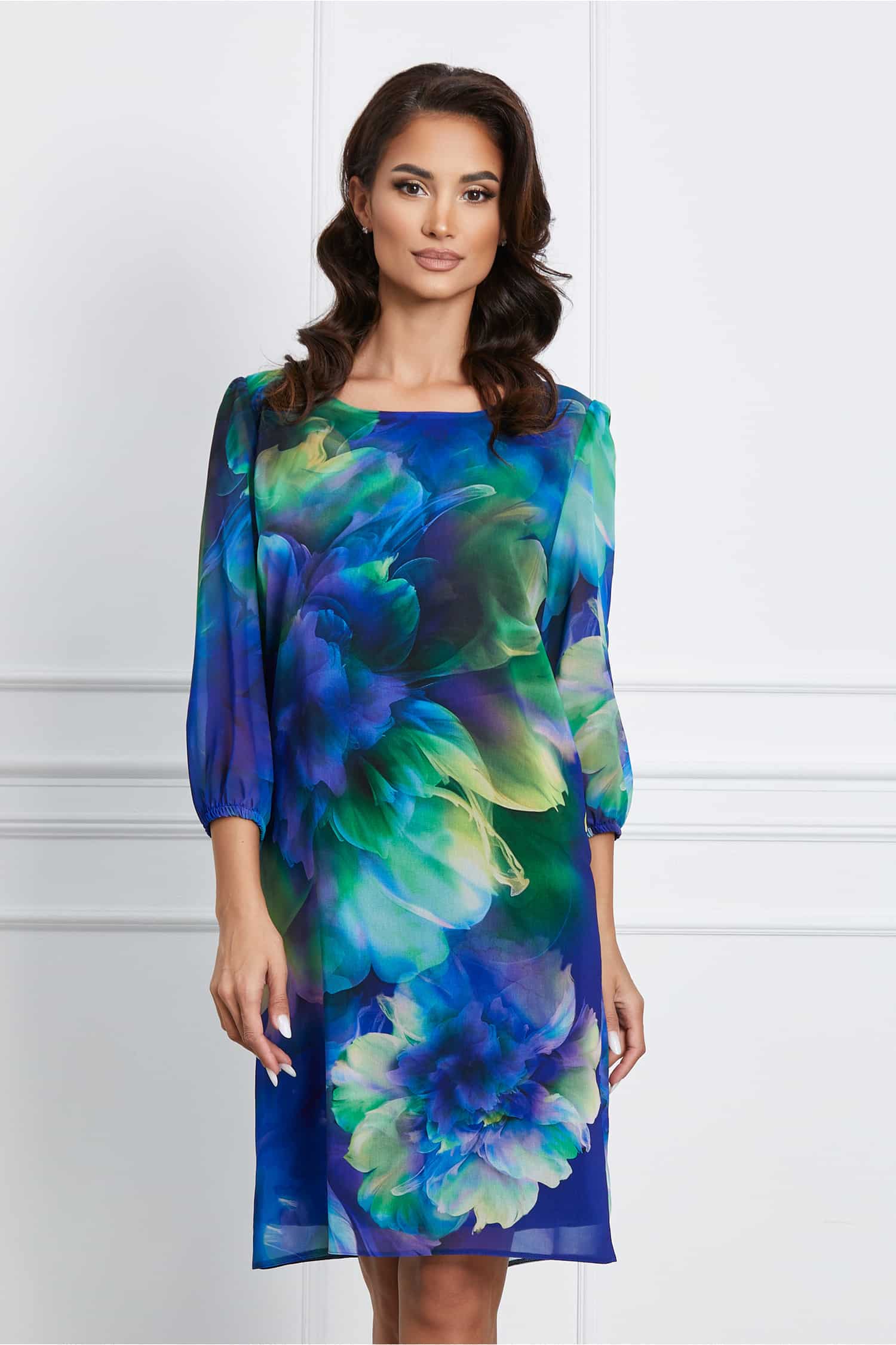 Specification: Rochie Anemona albastra cu imprimeuri verzi