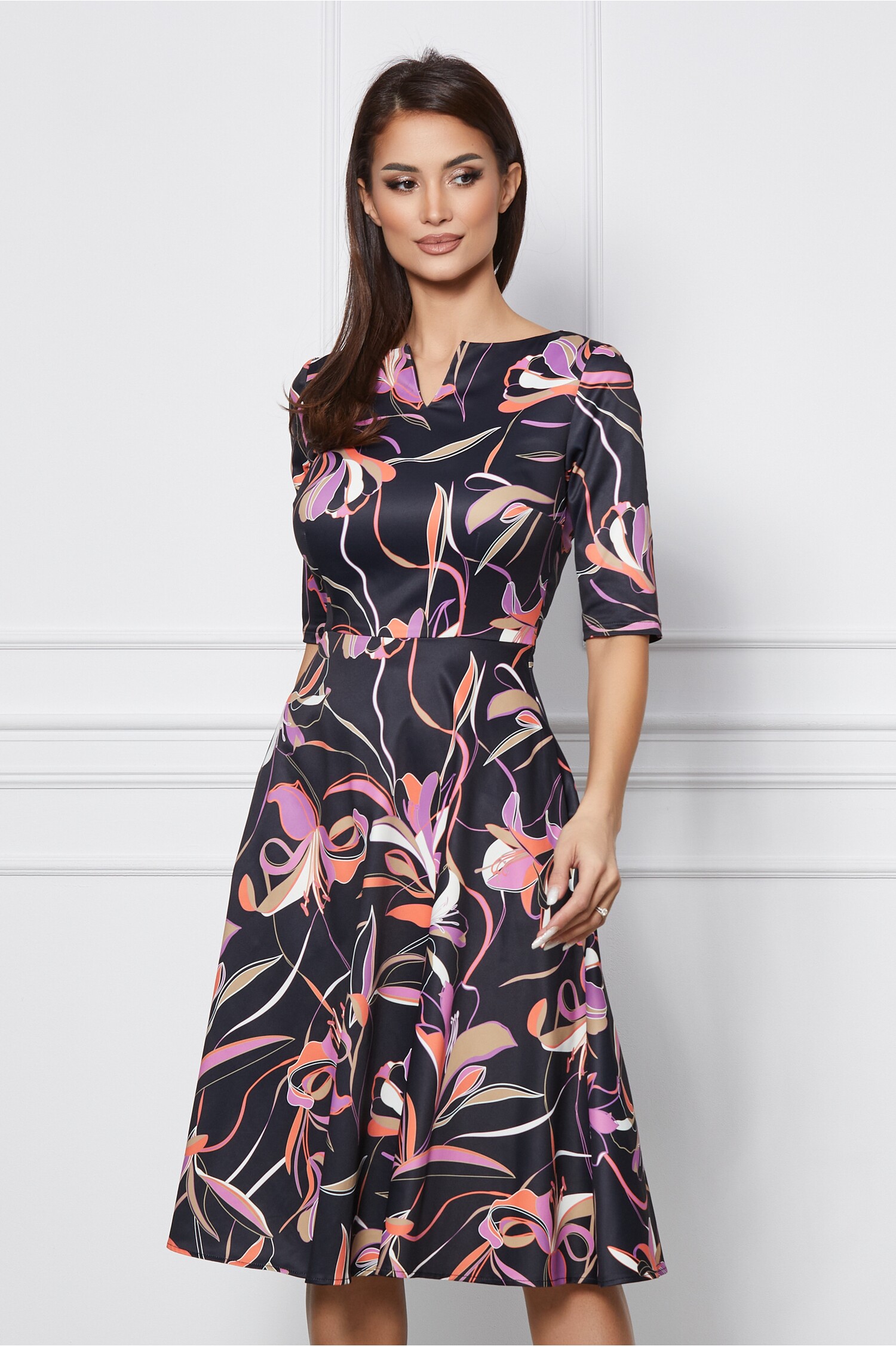Specification: Rochie Celia neagra cu imprimeu floral mov