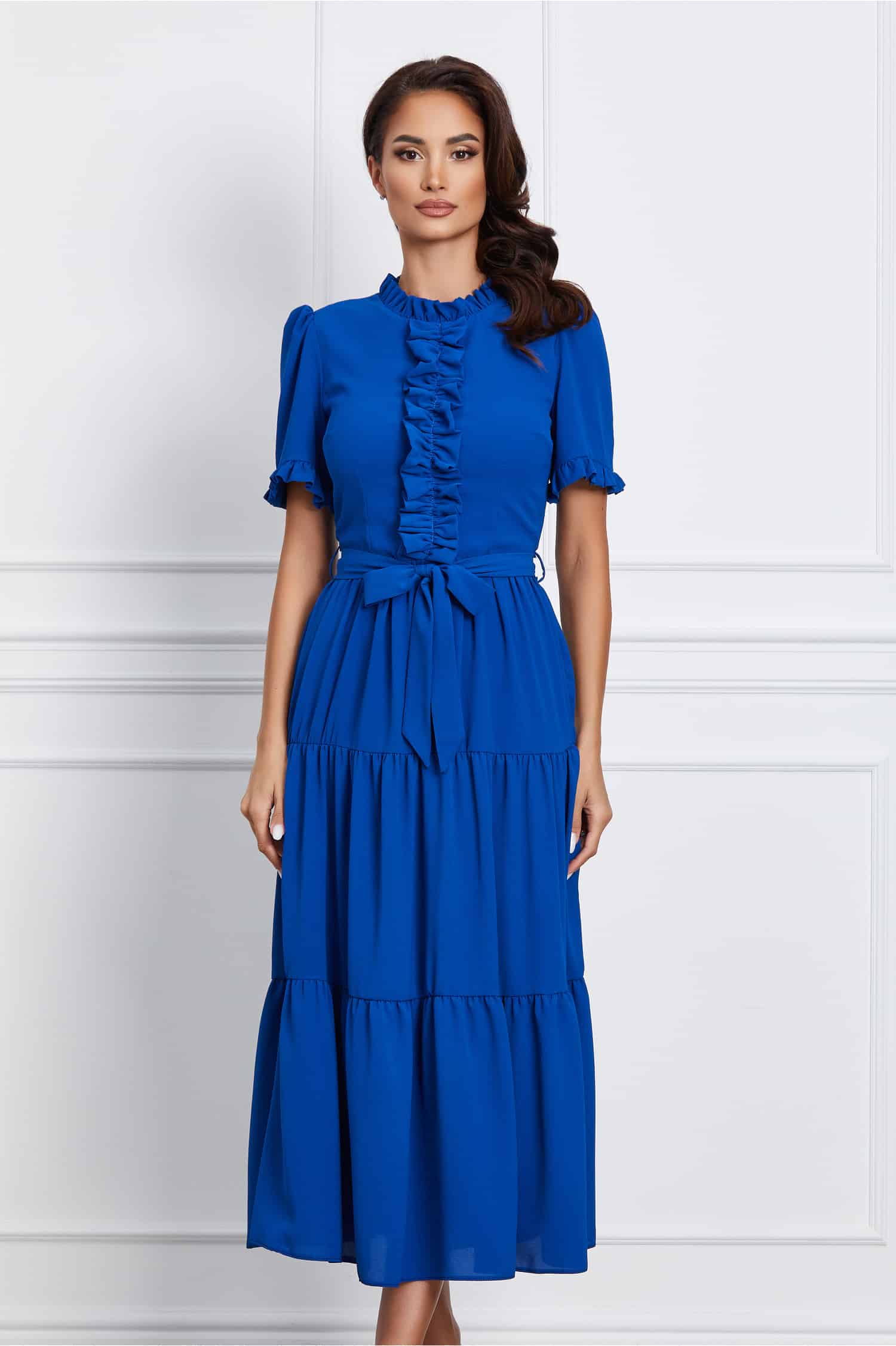 Specification: Rochie Crina albastra cu volanase si cordon in talie