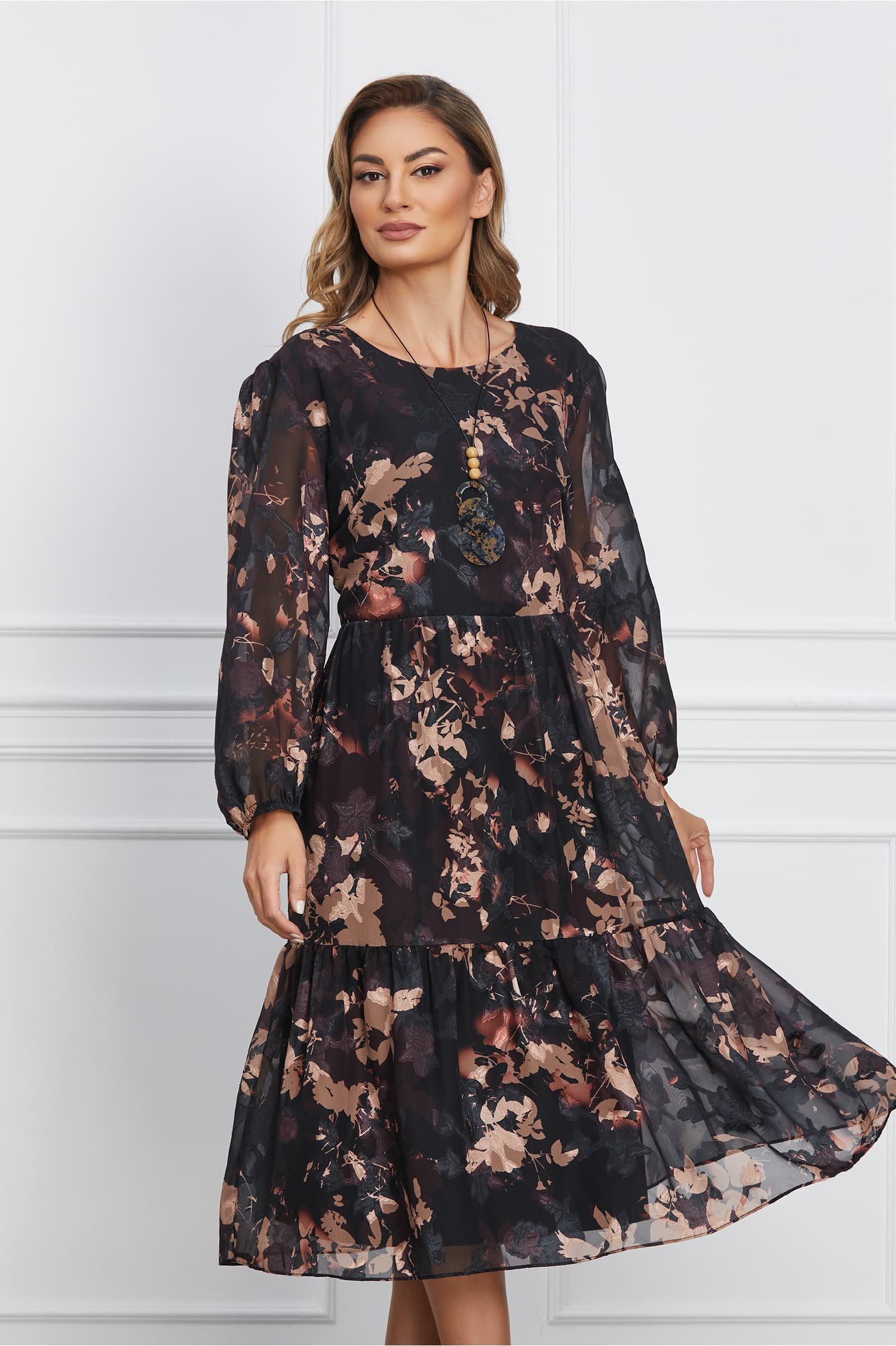 Specification: Rochie Daria neagra cu imprimeuri maro