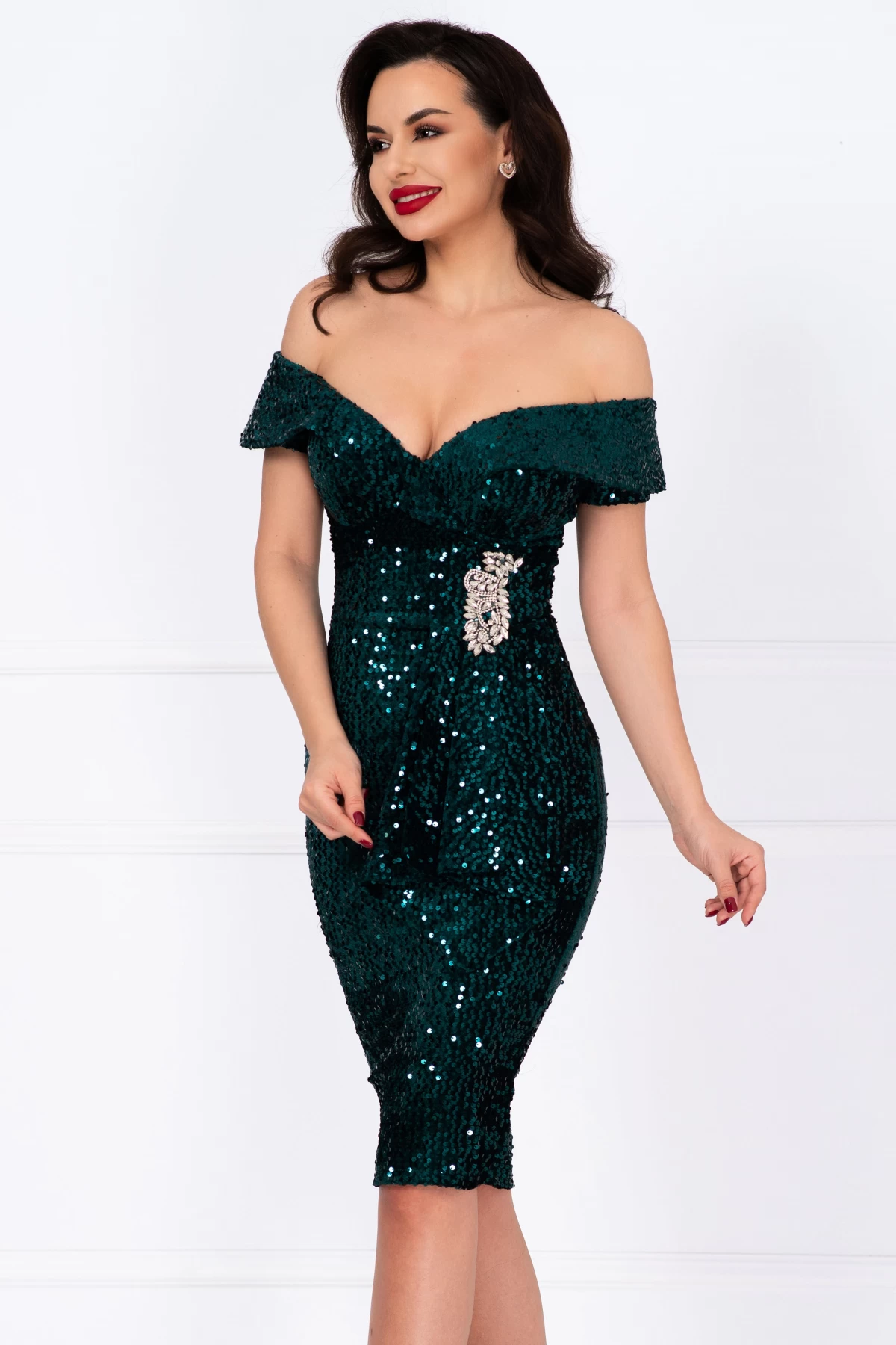 Specification: Rochie de ocazie din paiete Iolanda verde cu accesoriu din strassuri
