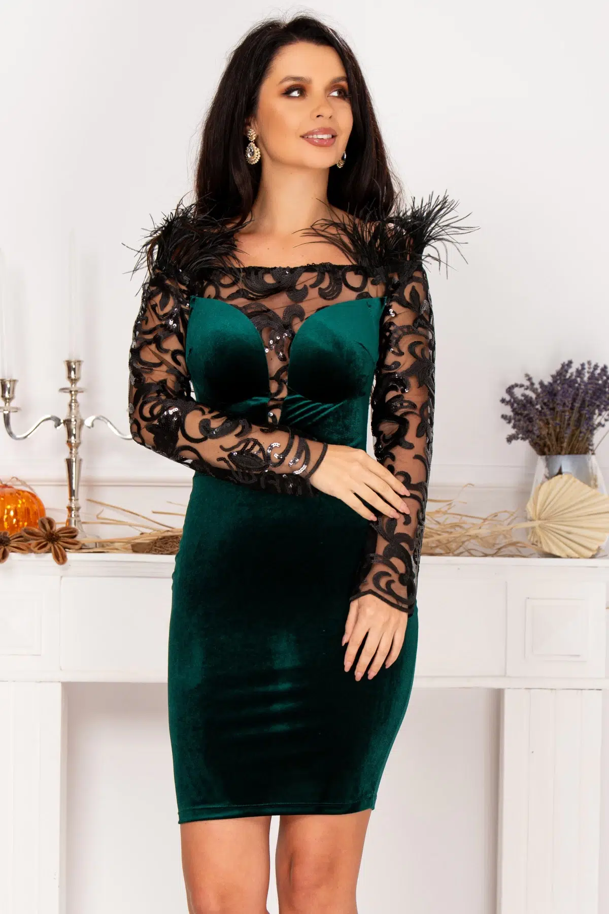 Rochie de ocazie Jacqueline verde cu maneci lungi brodate Culoare: verdeCroi: cambratTextura: catifea tulle broderie fulgi paieteBust buretatCupe cu push-upInchidere cu fermoar la spateFara dubluraUmeri cazutiBretele reglabile pentru sustinereManeci lungi din tulle negru brodat si paiete discrete Fulgi decorativi aplicati la umeriCompozitie: 95% poliester 5% elastanFabricat in Romania* Echipa InPuff face toate eforturile in a prezenta cat mai bine culorile produselor prezentate pe site insa culorile pot diferi de situatia reala si pot varia în functie de setarile monitorului/dispozitivului dvs!