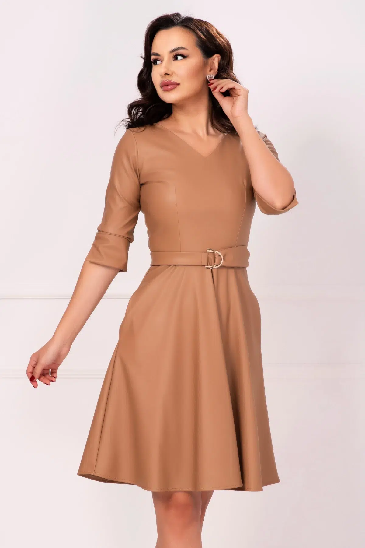 Rochie de zi din piele ecologica camel in clos