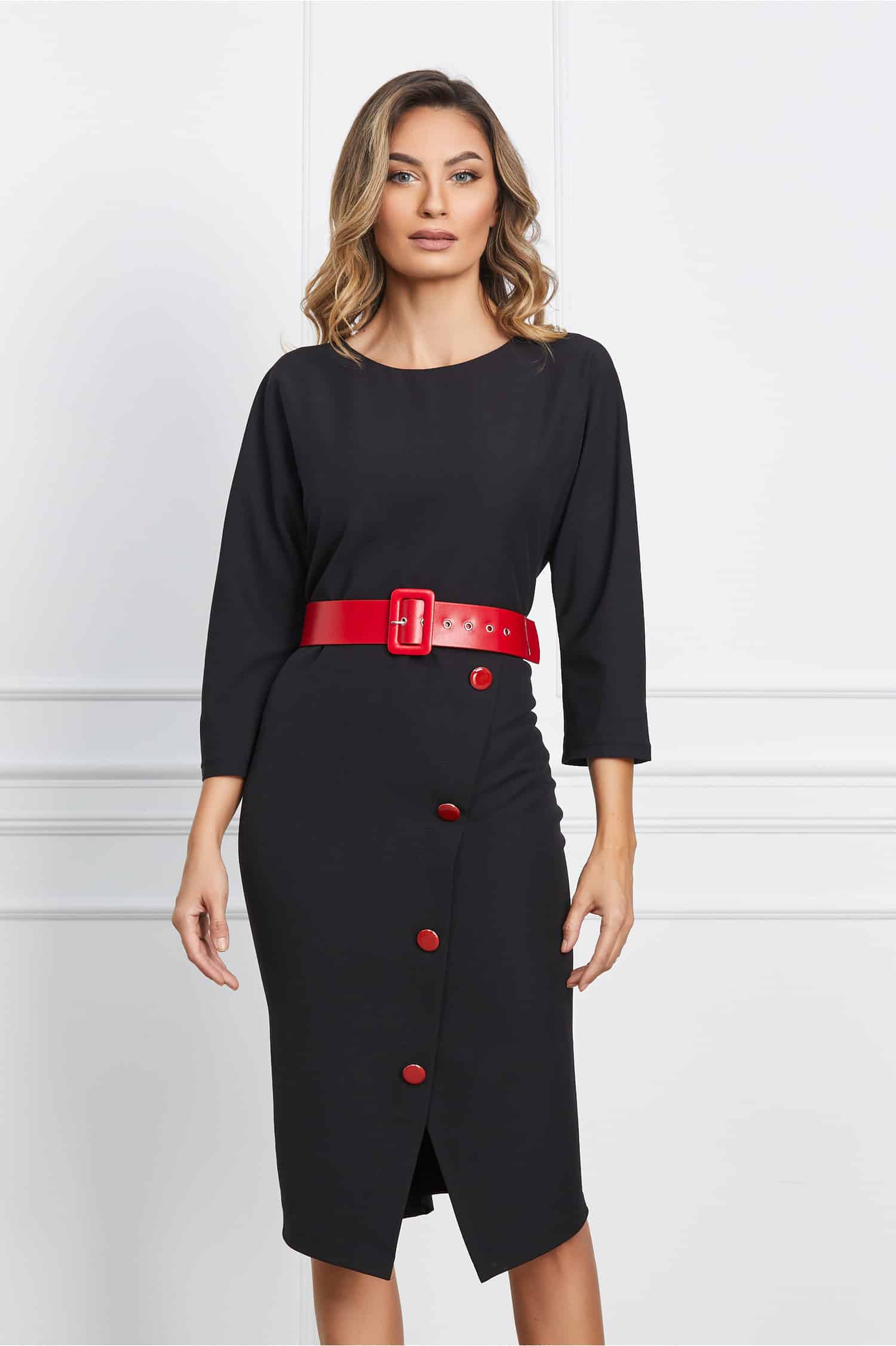 Specification: Rochie Doina neagra cu nasturi pe fusta si curea in talie