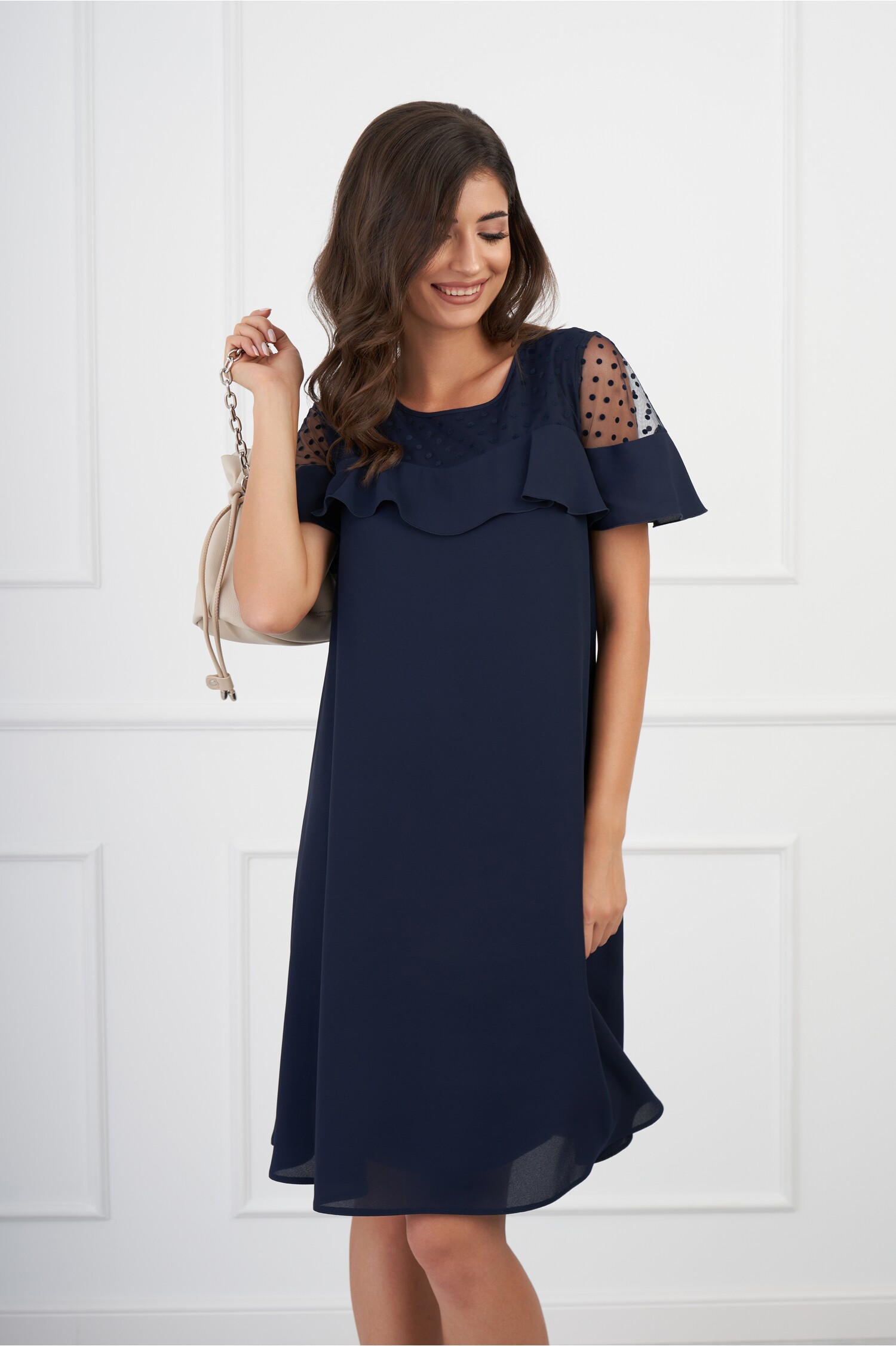 Specification: Rochie Dora bleumarin cu buline catifelate la bust