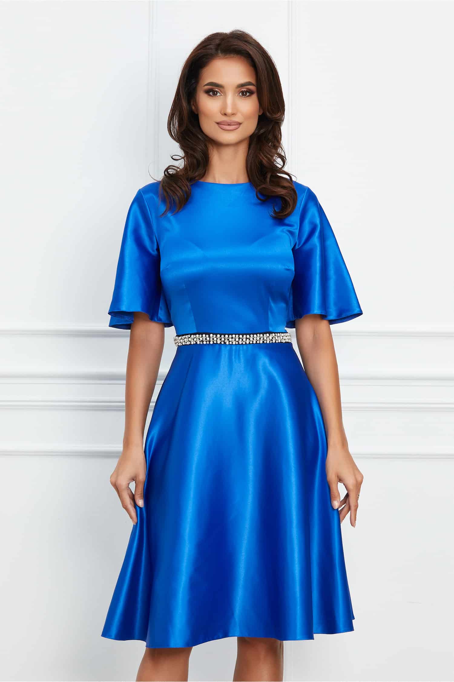 Rochie Dy Fashion albastra cu perle in talie ! Transport si retur gratuite indifernet de valoarea comenzii!