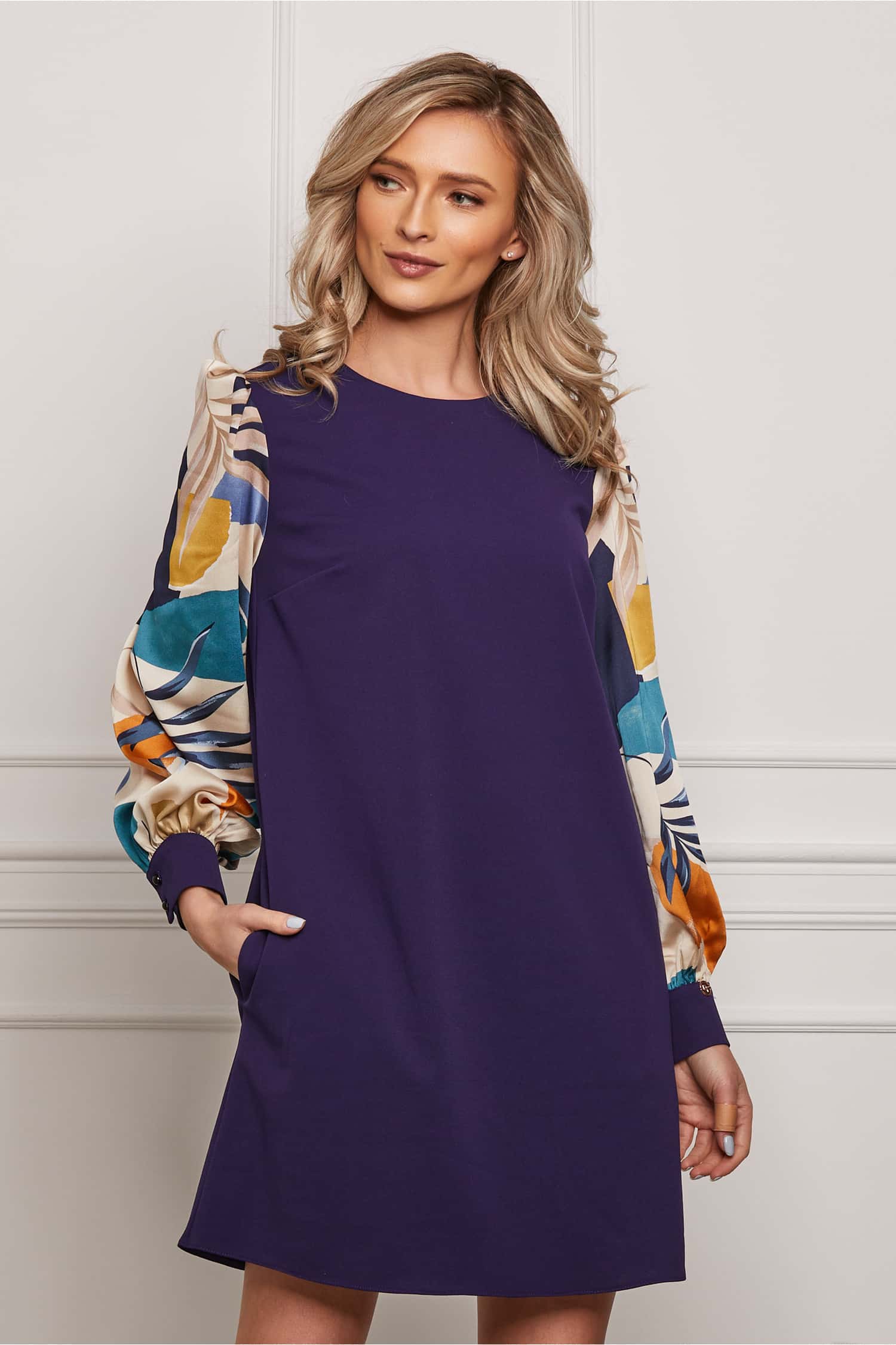 Rochie office cu maneci din voal cu imprimeu. Are decolteu rotund, maneci lungi si croi tip A.  Rochie office Decolteu rotund Maneci lungi Croi tip A Buzunare functionale Se inchide cu nasture la spate Material: Crep Compozitie: 100% Poliester Instructiuni de intretinere:          *Va rugam verificati eticheta produsului inainte de curatare! *Pozitia tiparului imprimeului poate fi diferita datorita taierii. *Modelul are inaltimea de 174 cm. *Va rugam sa retineti ca o usoara discrepanta de culoare ar trebui sa fie acceptabila datorita luminii si luminozitatii ecranului.   *Va rugam verificati ghidul de marimi, in cm, pentru a alege corect marimea.