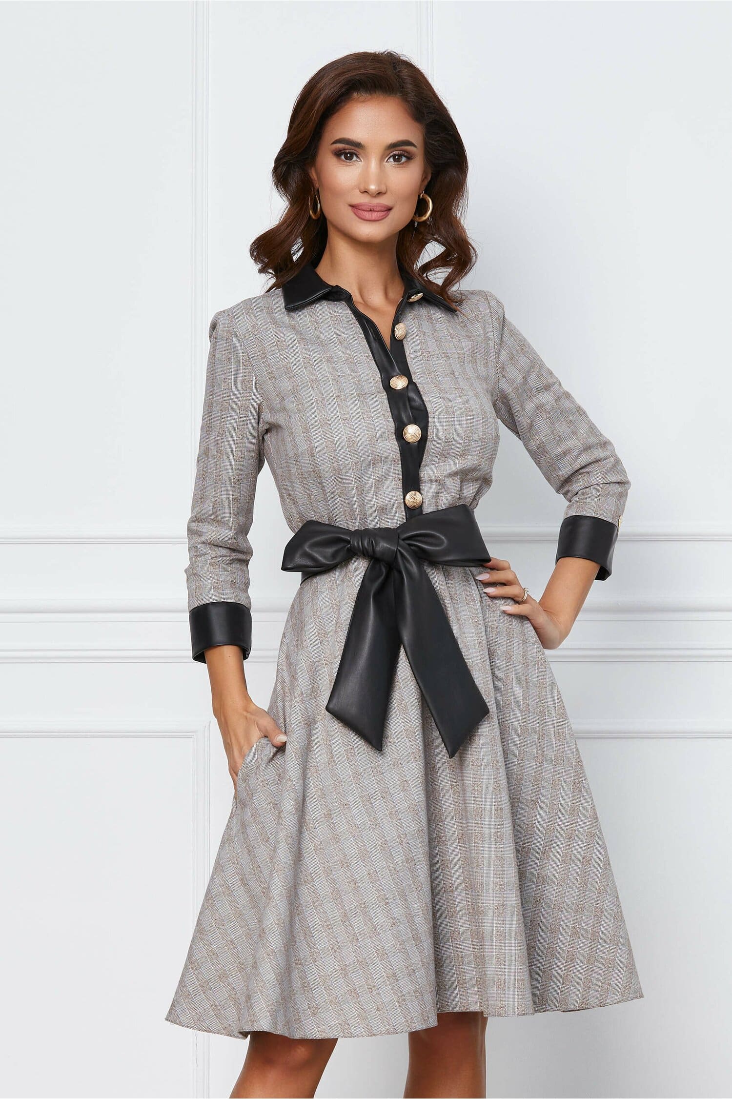 Rochie Dy Fashion bleumarin cu nasturi la bust si cordon in talie