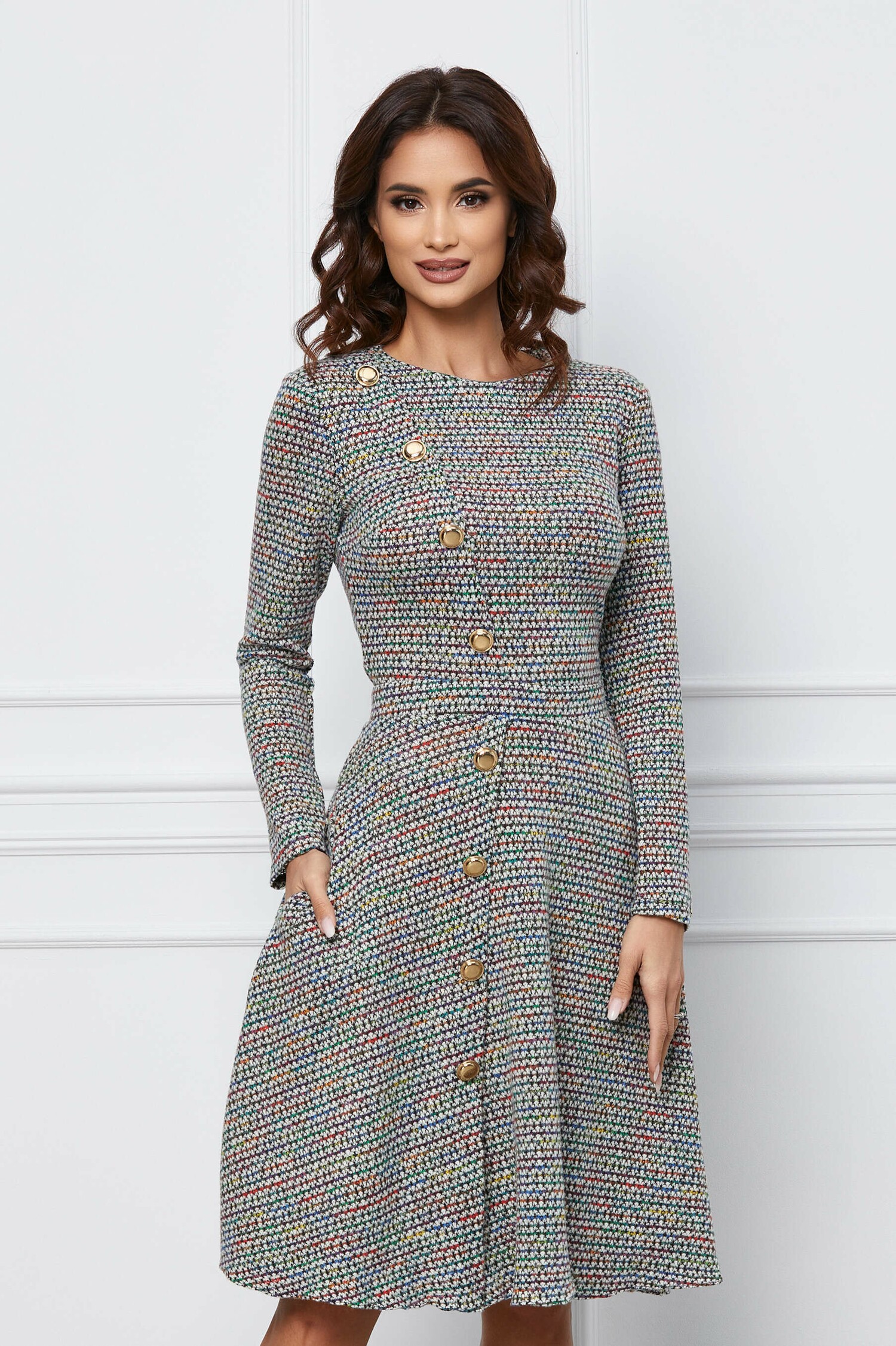 Specification: Rochie Dy Fashion gri din tweed cu nasturi decorativi