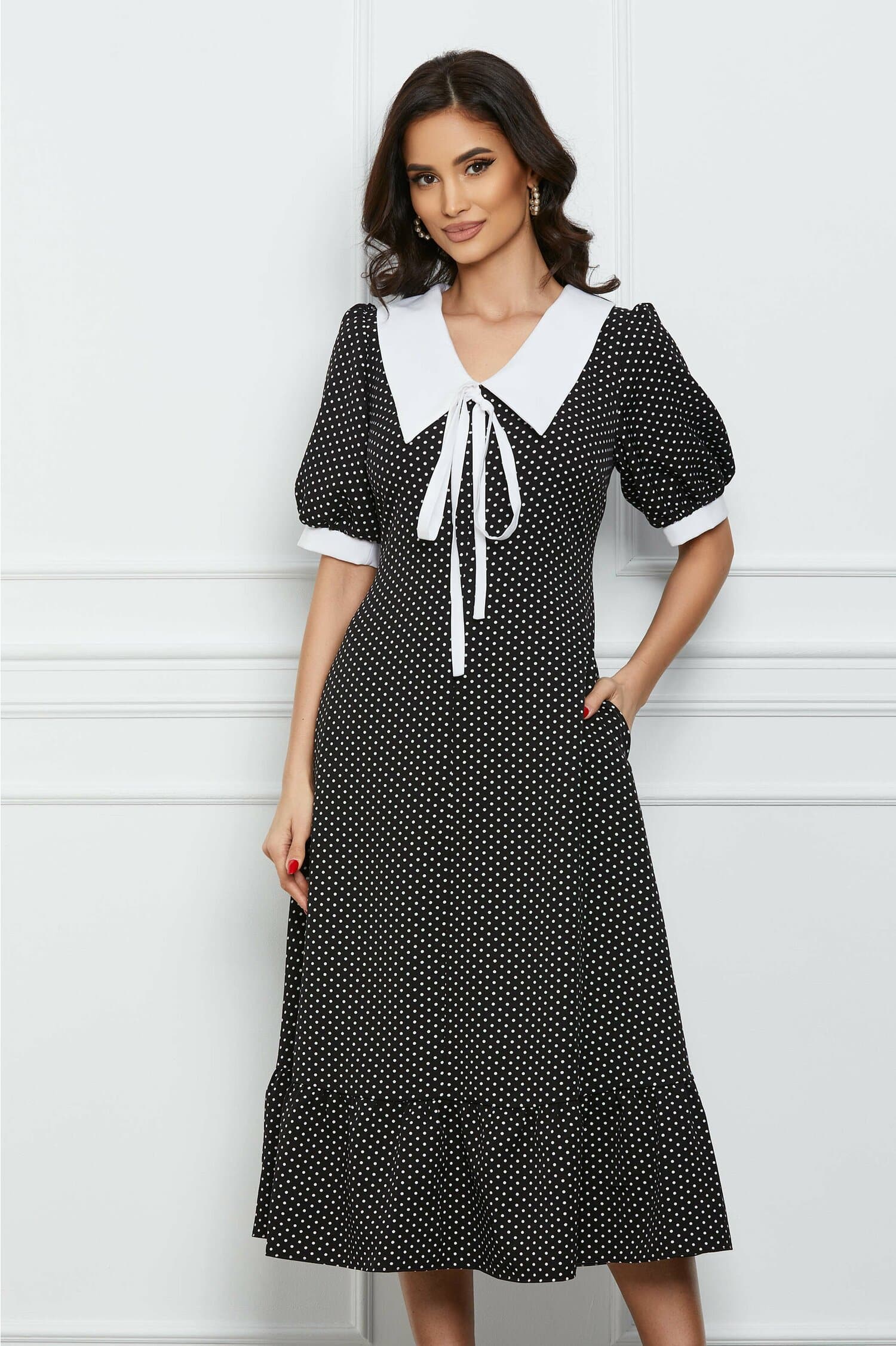 Specification: Rochie Dy Fashion ivory cu imprimeu rosu si curea in talie
