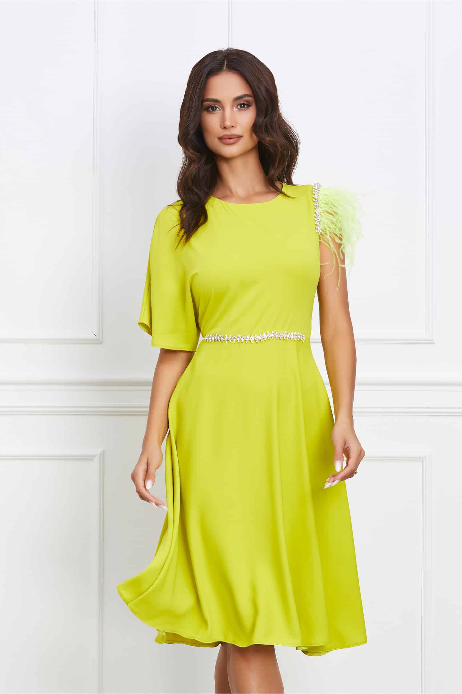Specification: Rochie Dy Fashion lime cu pene si strasuri