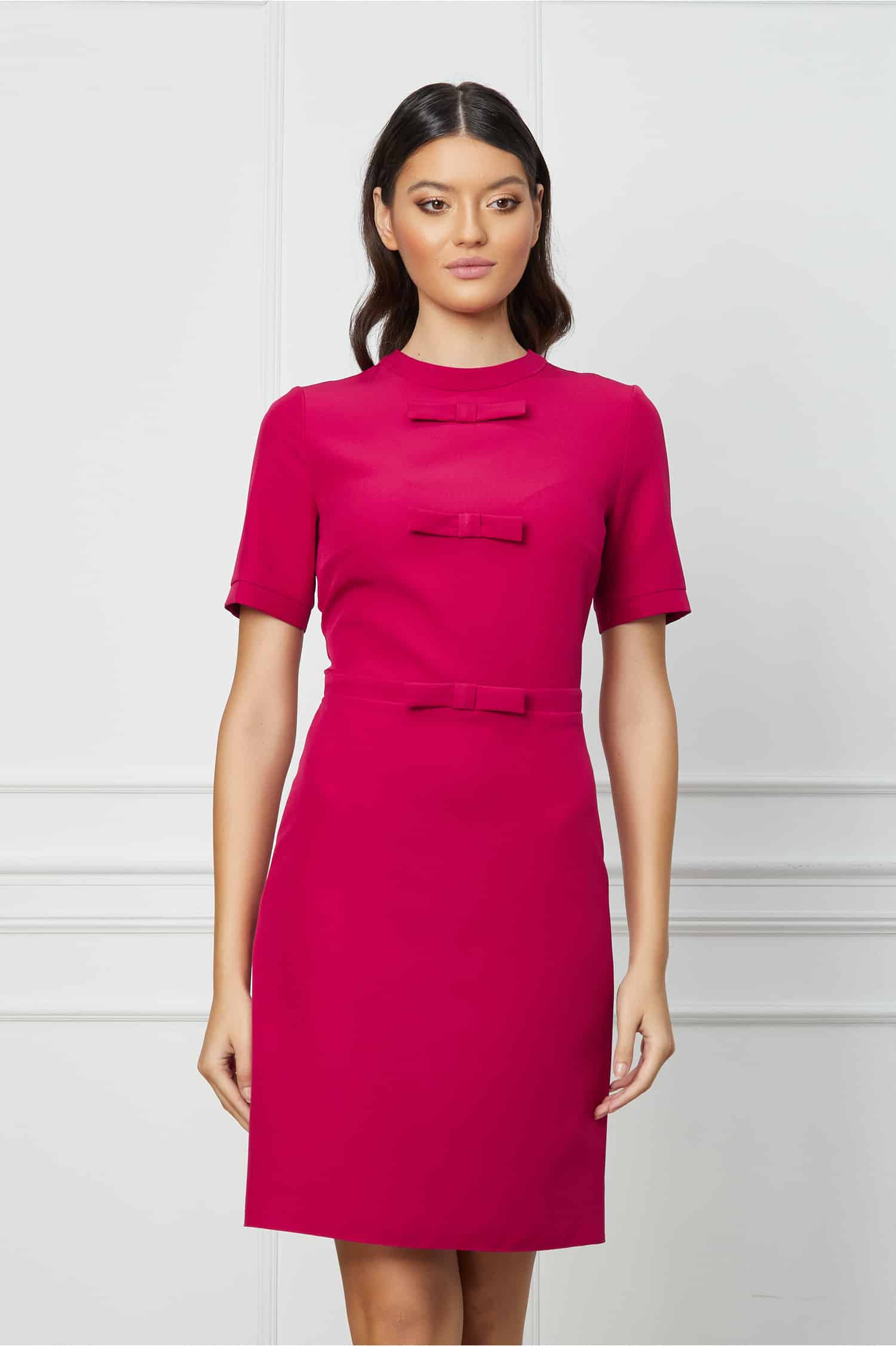 Specification: Rochie Dy Fashion magenta cu funde la bust