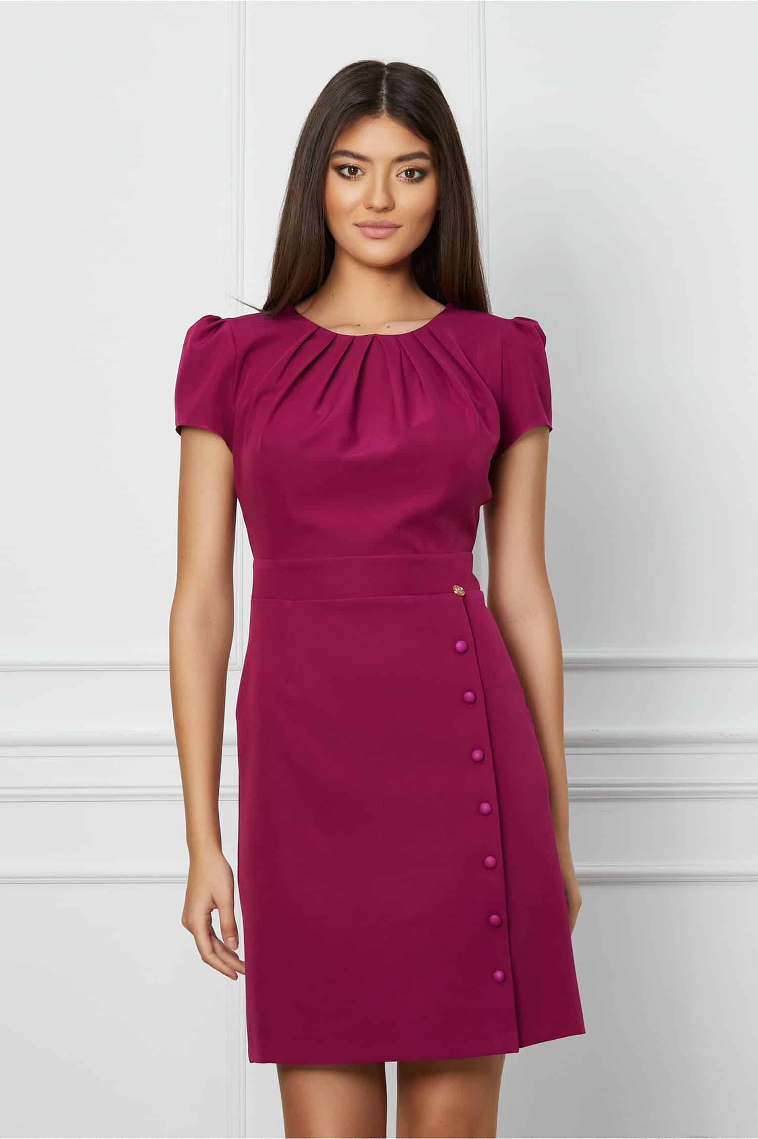 Specification: Rochie Dy Fashion magenta cu nasturi pe fusta