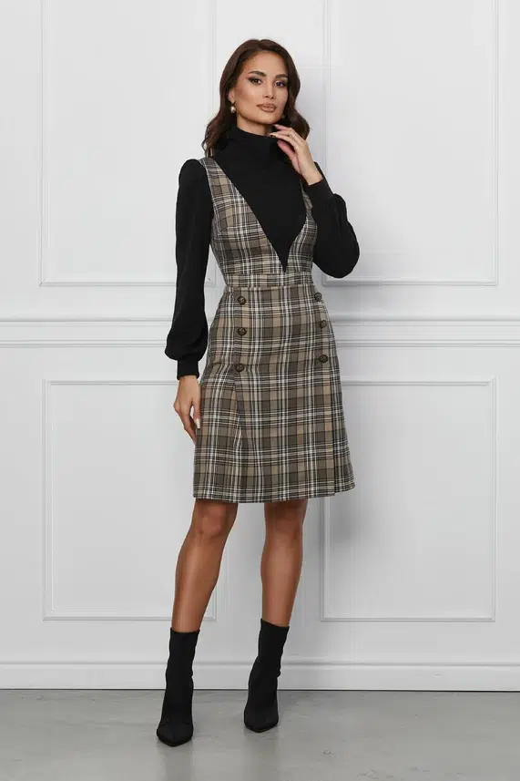 Specification: Rochie Dy Fashion maro cu carouri tip sarafan
