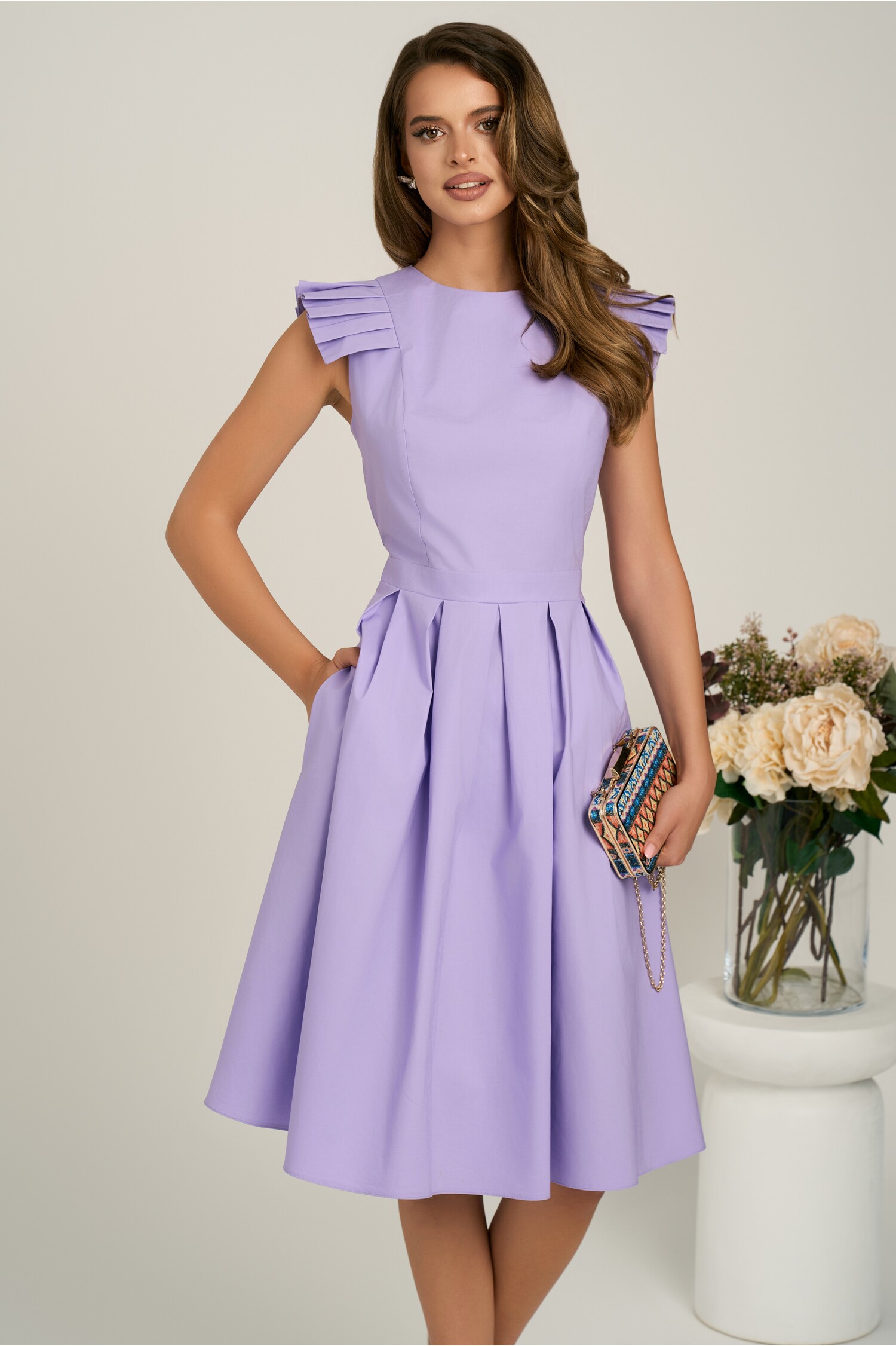 Rochie DY Fashion midi lila din poplin in clos cu volane la umeri