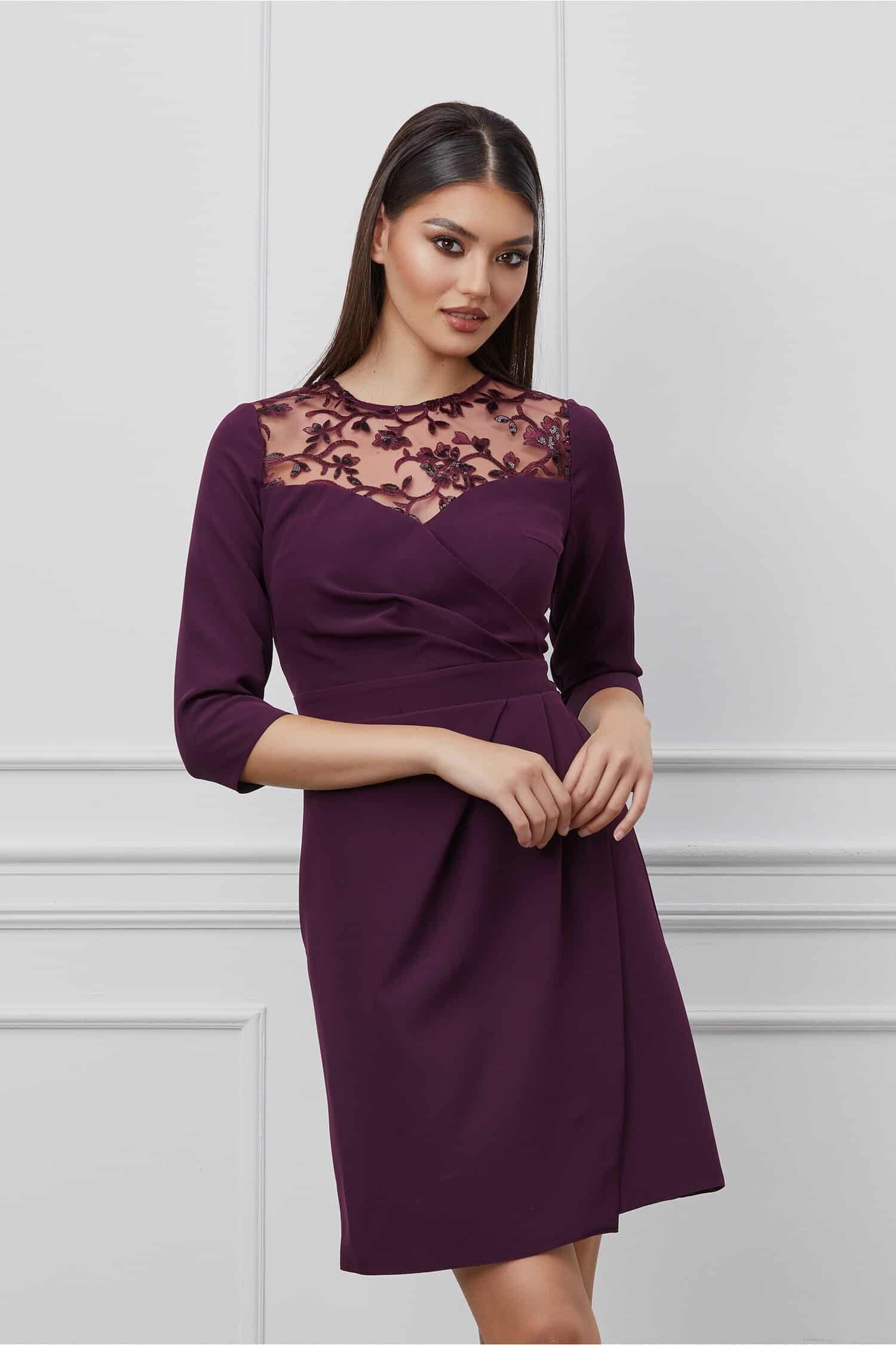 Rochie Dy Fashion mov cu dantela la bust si pliuri pe fusta Transport Gratuit* la orice comanda! Retur in 14 zile! ! Transport si retur gratuite indifernet de valoarea comenzii!