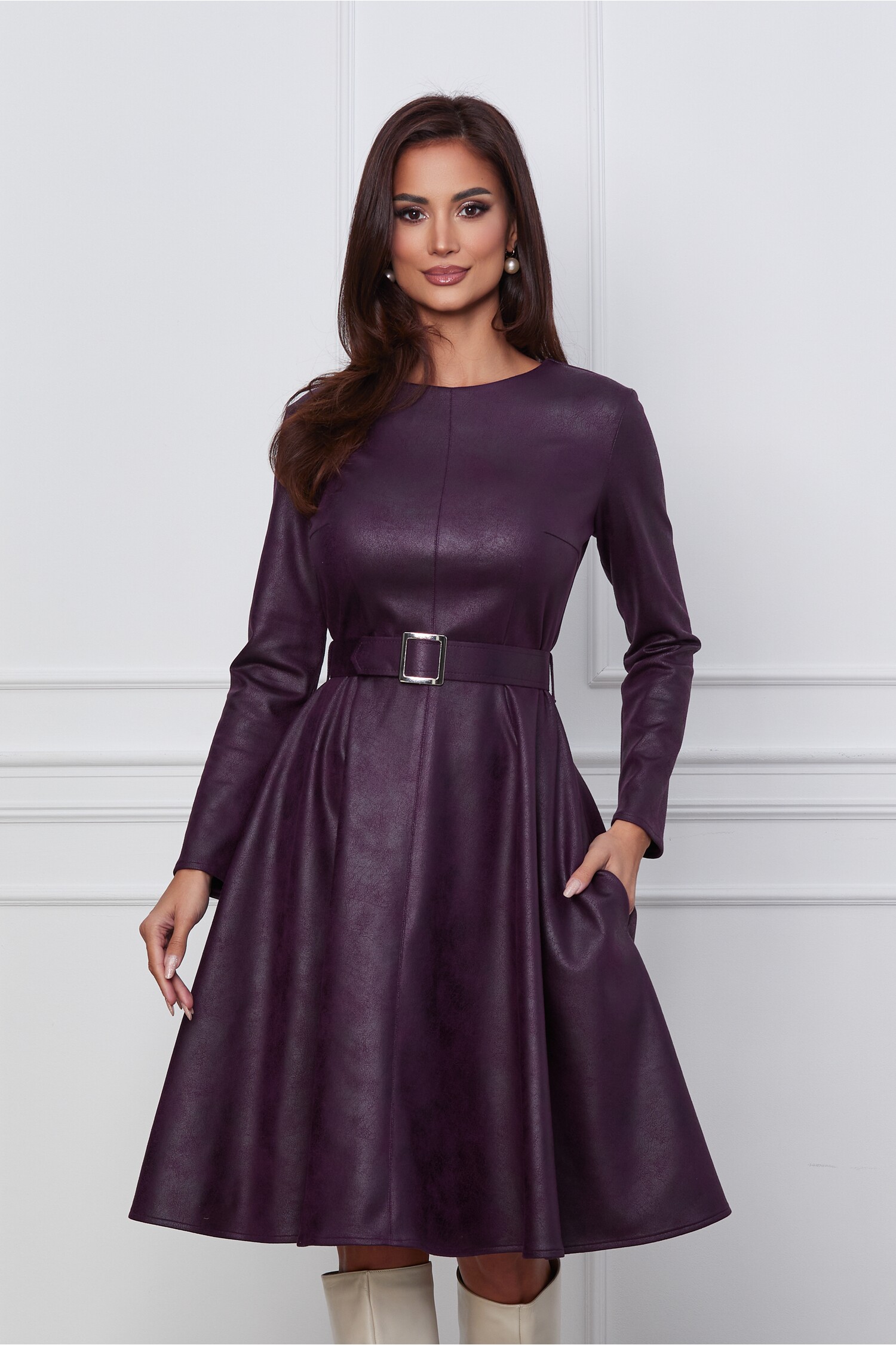 Specification: Rochie Dy Fashion mov pruna din piele intoarsa ecologica cu o curea in talie