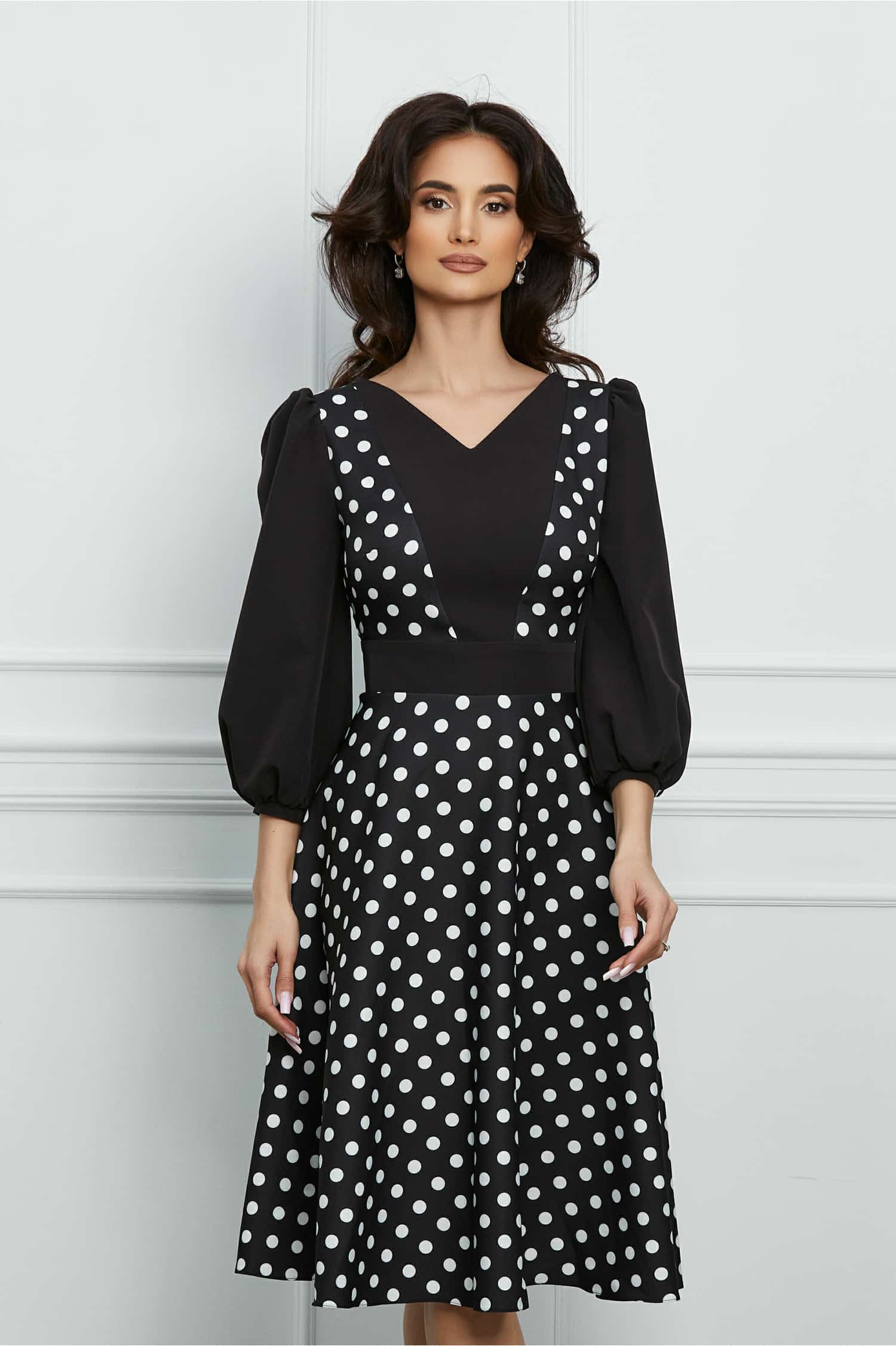 Specification: Rochie Dy Fashion neagra cu buline albe tip sarafan
