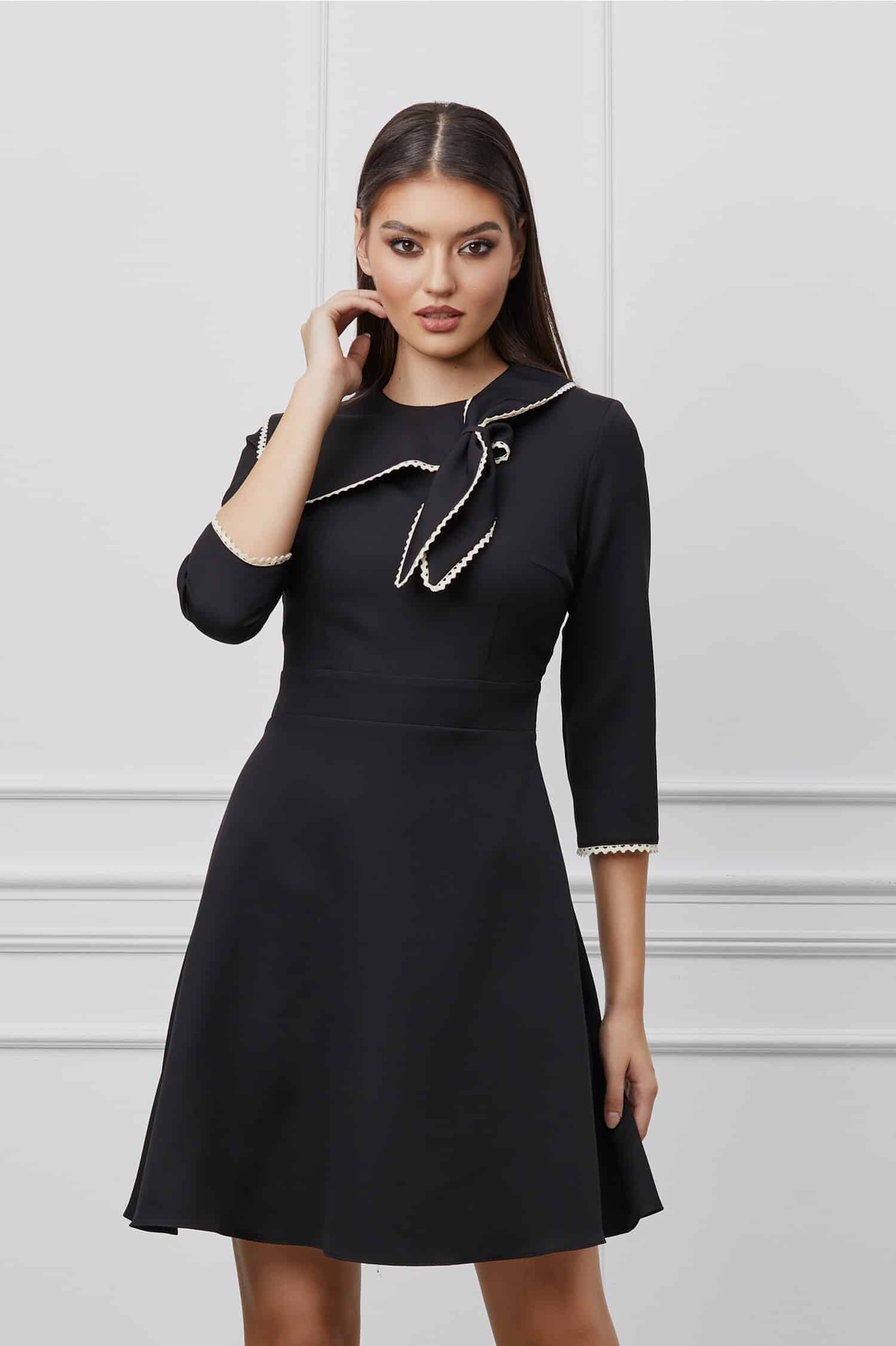 Specification: Rochie Dy Fashion neagra cu funda la guler