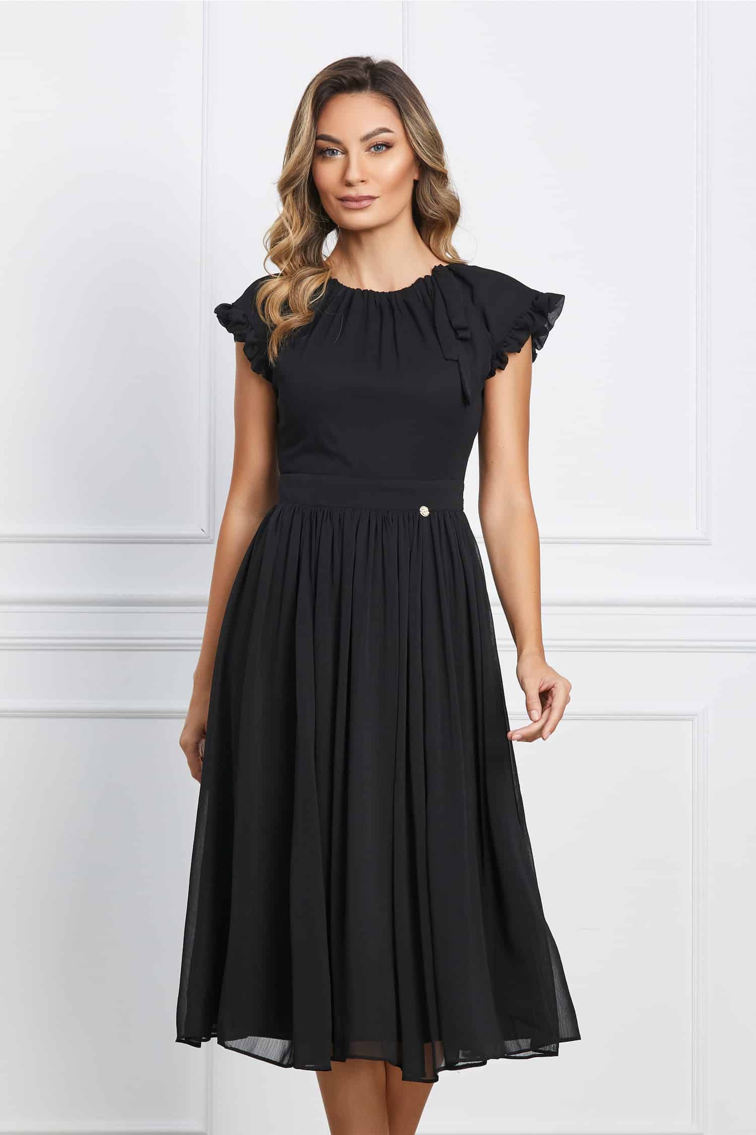 Specification: Rochie Dy Fashion neagra din voal cu volanas la maneci