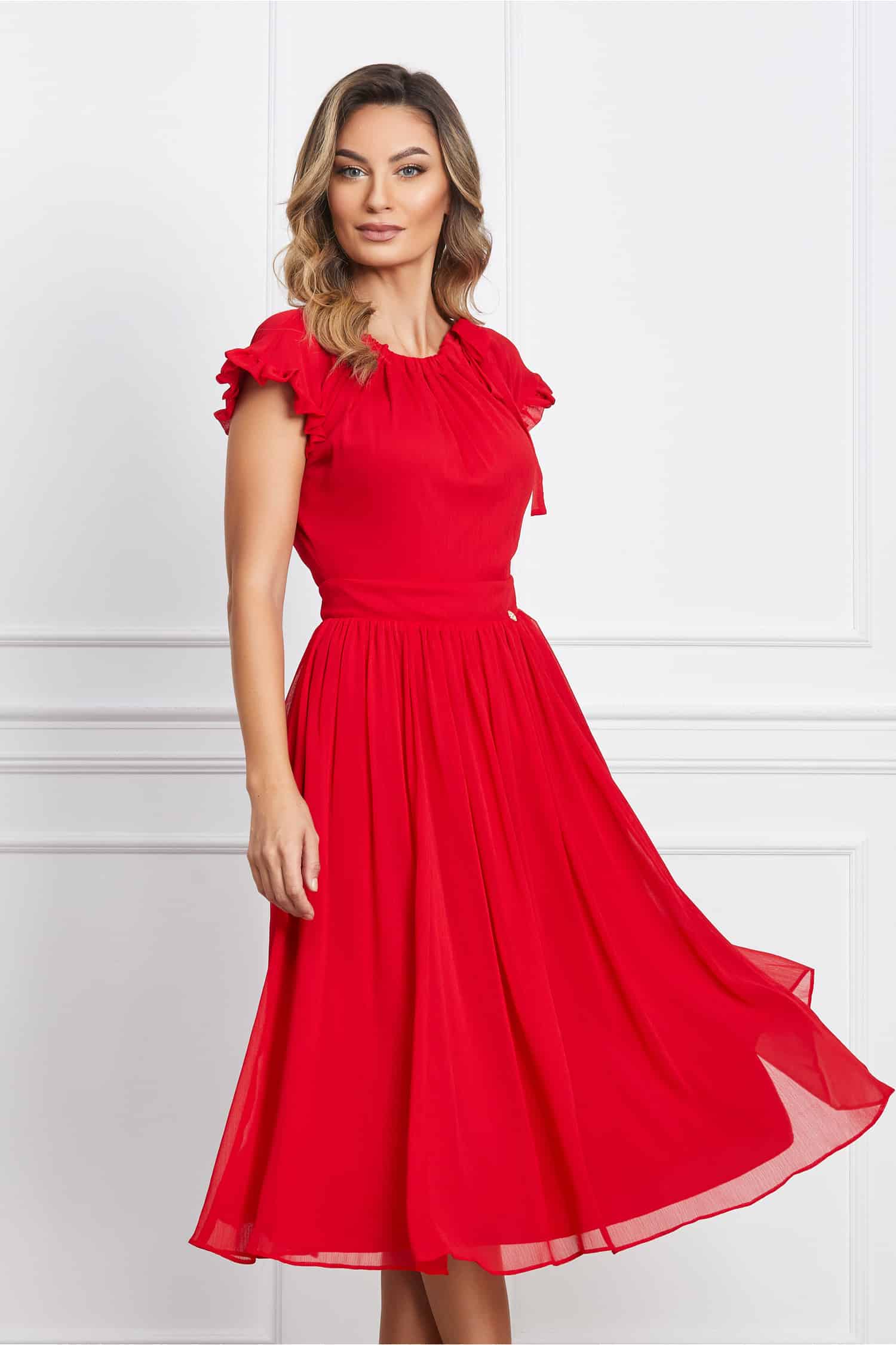 Specification: Rochie Dy Fashion rosie din voal cu volanas la maneci