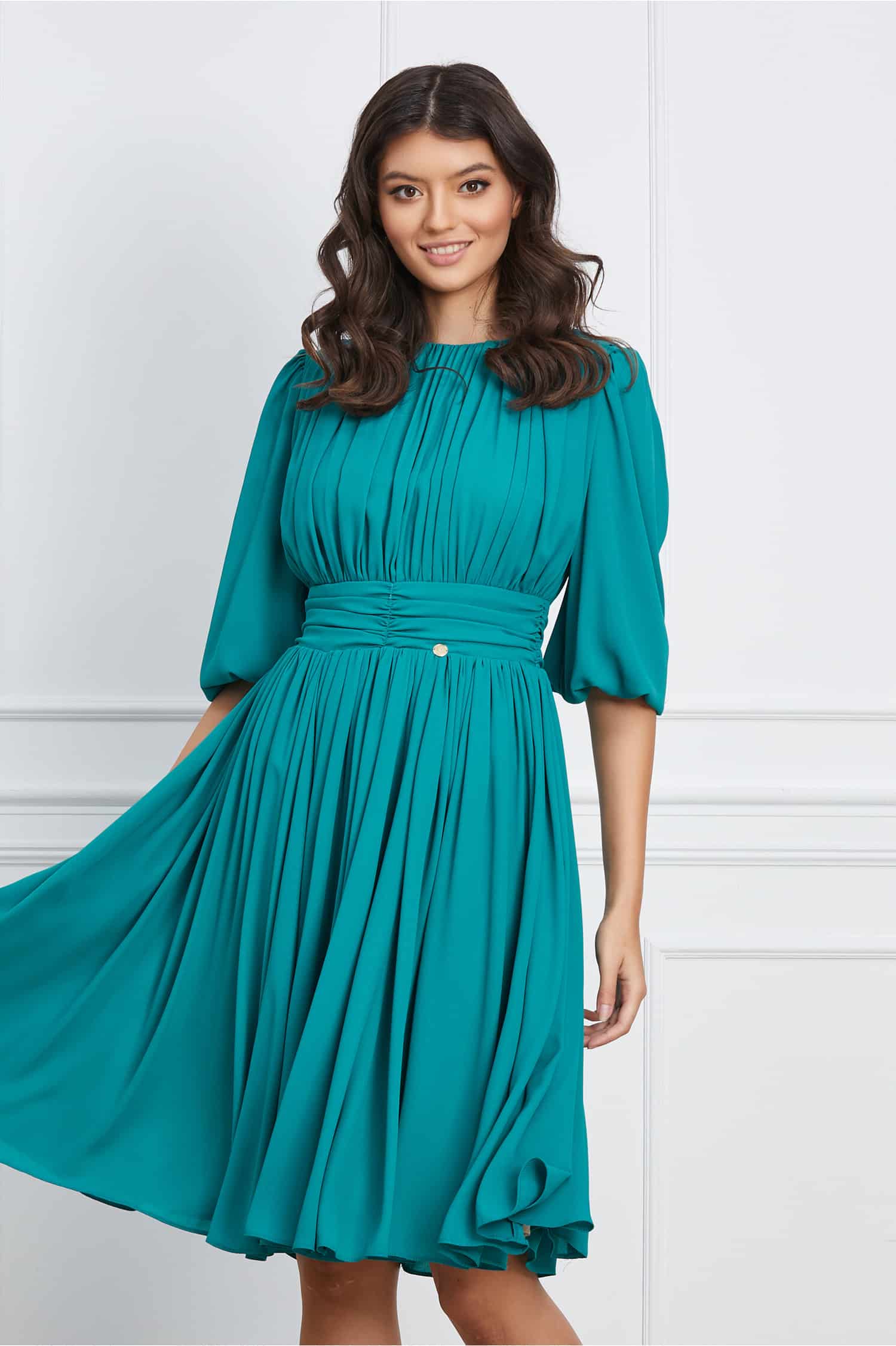 Specification: Rochie Dy Fashion turcoaz cu pliuri