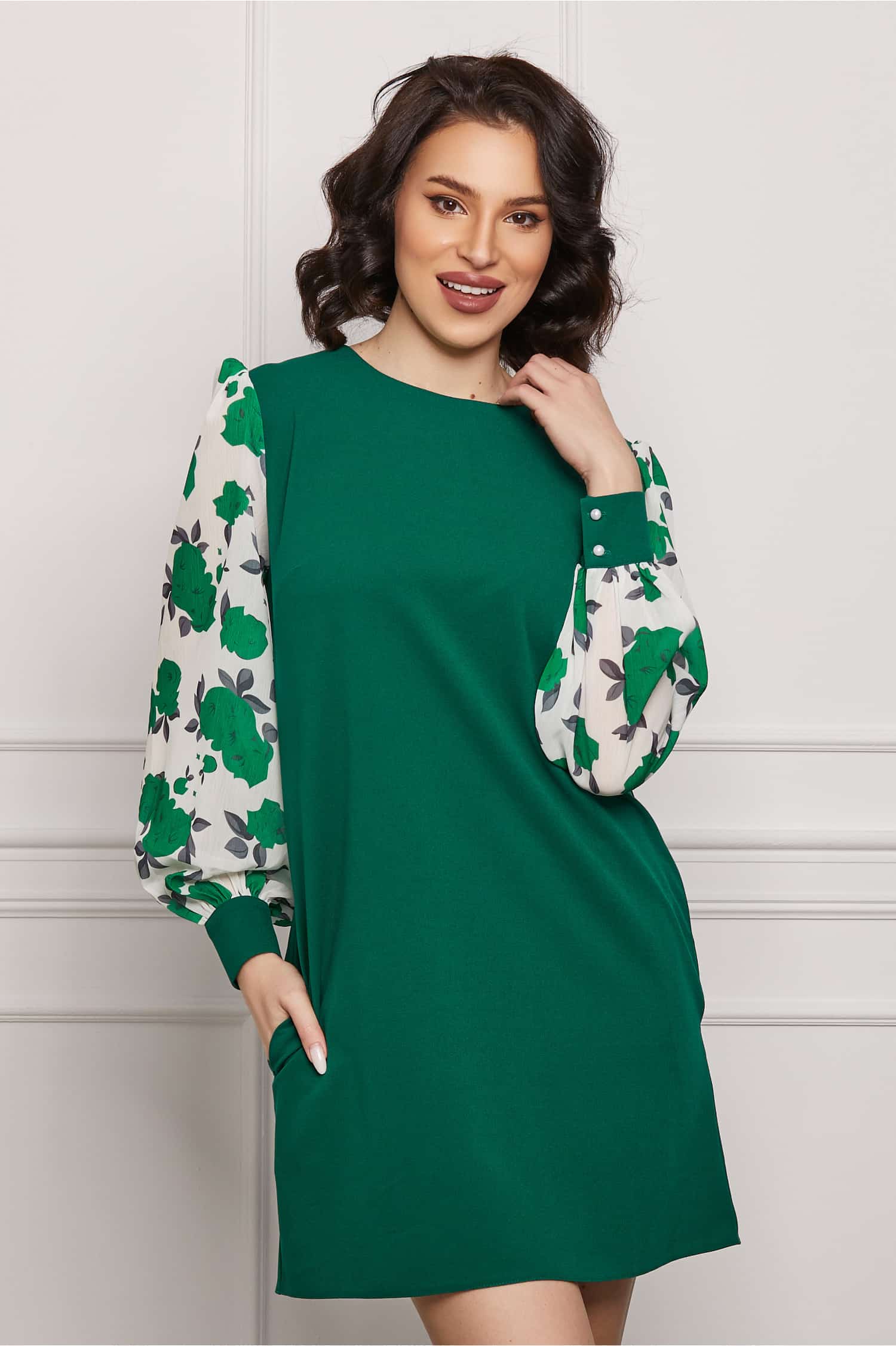 Rochie Dy Fashion verde cu imprimeu pe maneci