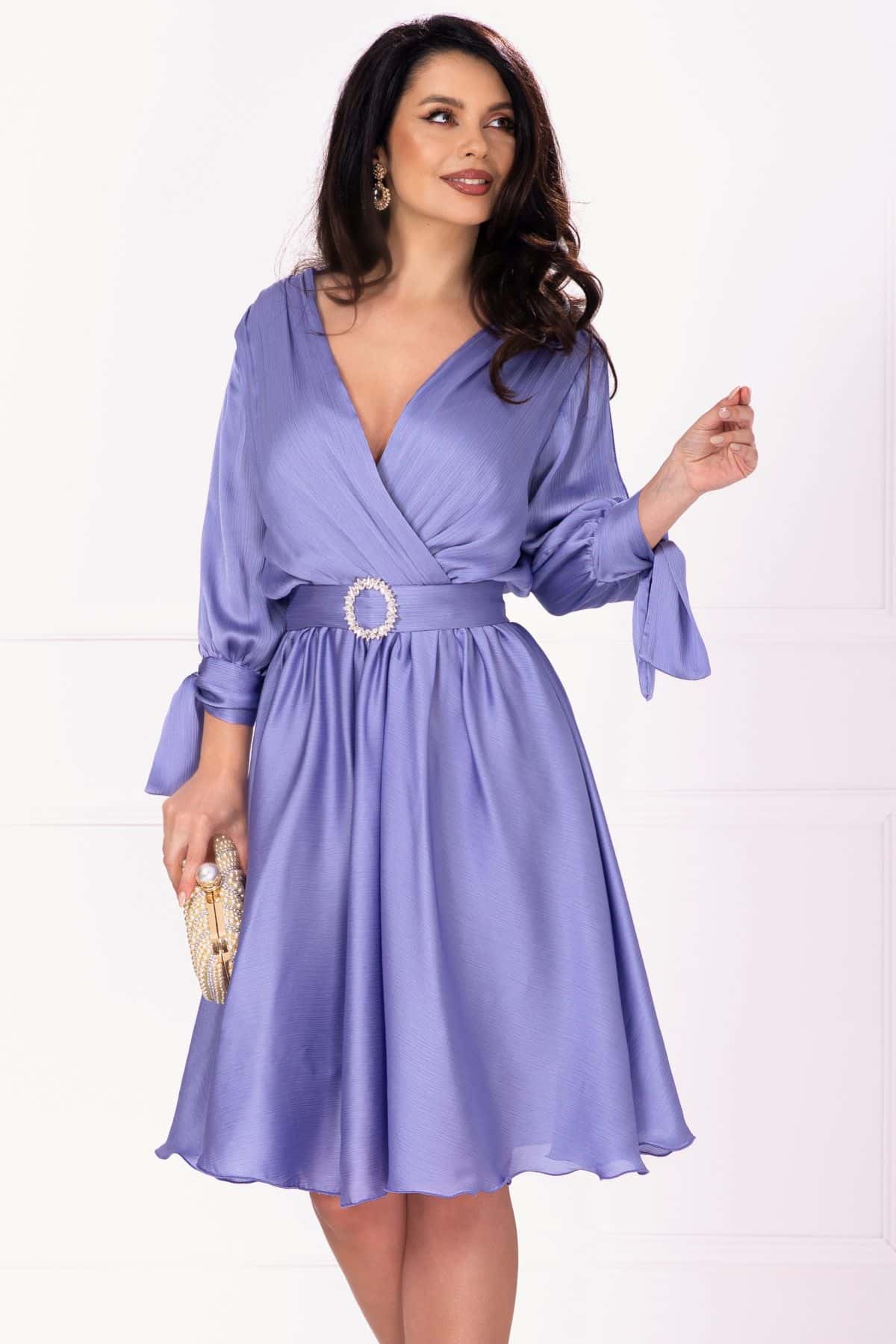 Be the first to review “Rochie eleganta Saray lila in clos cu catarama pretioasa”