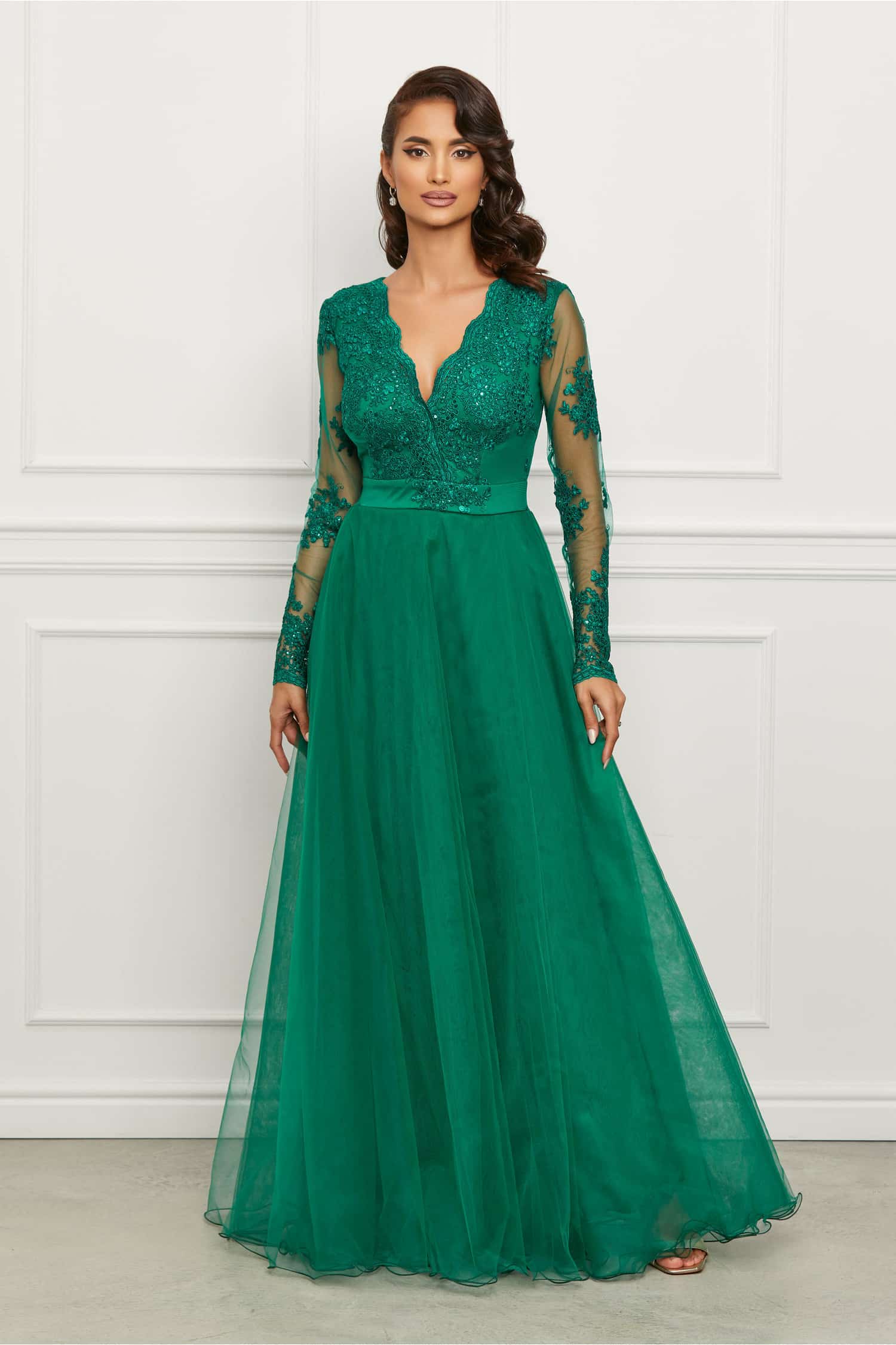 Rochie Ella Collection Alice verde din tull cu broderie la bust
