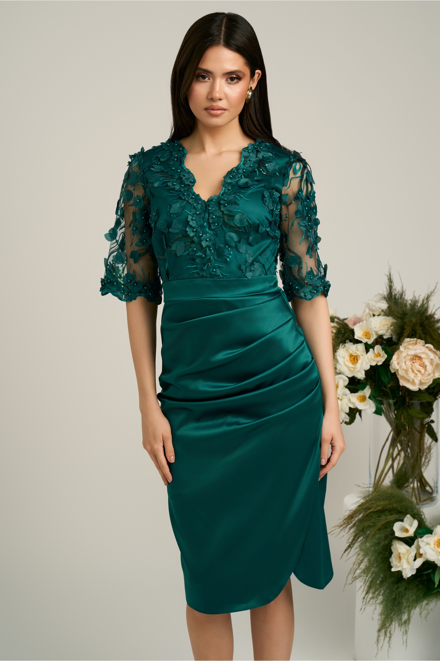 Specification: Rochie Ella Collection Catlyn verde de ocazie cu broderie pe bust