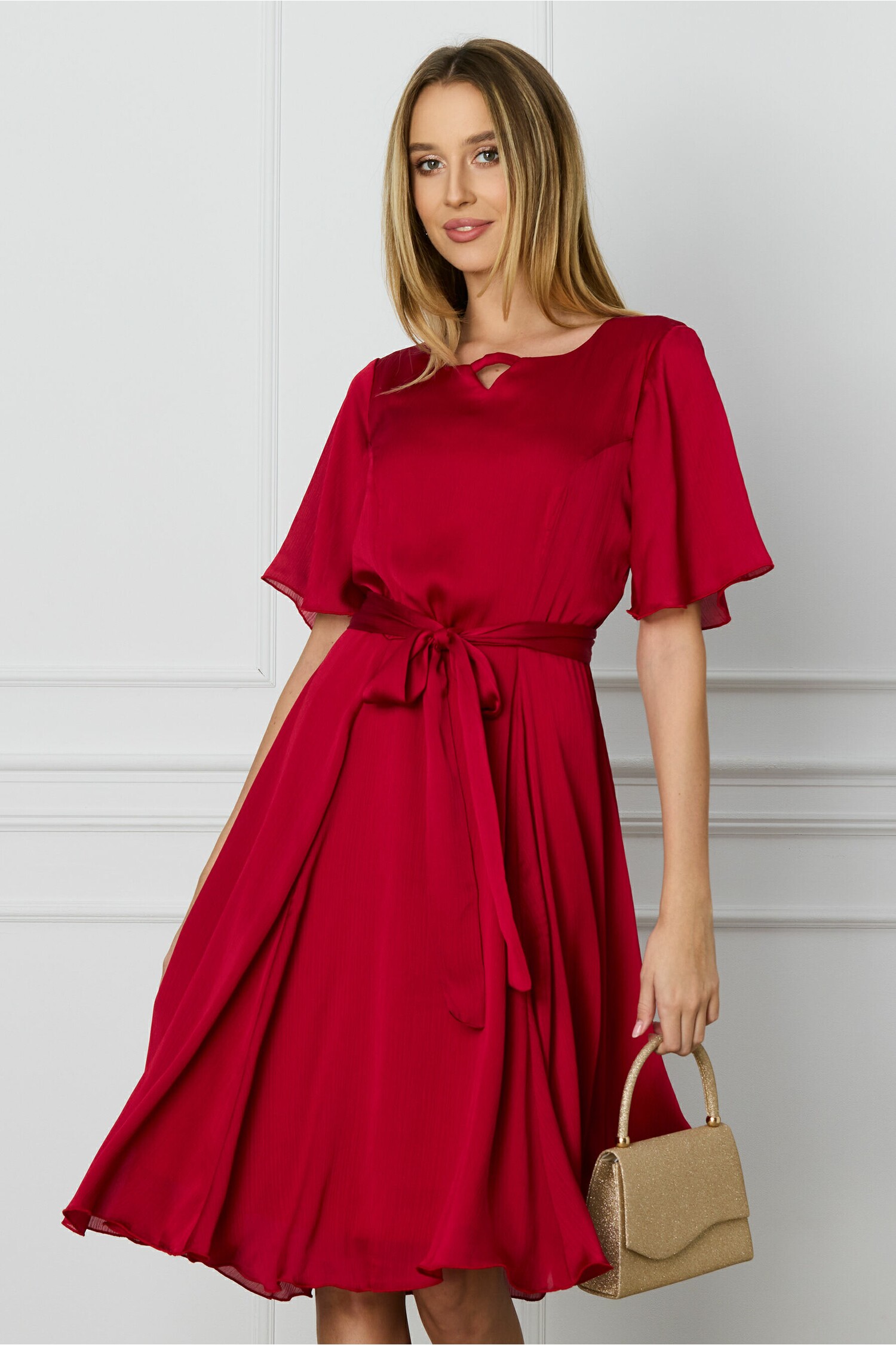 Rochie eleganta din voal cu cordon detasabil in talie. Are decolteu rotund cu decupaj discret, maneci scurte si croi clos.? Rochie eleganta Decolteu rotund Maneci scurte Croi clos Cordon in talie Captusita pe interior Inchidere cu fermoar la spate Material: Voal Compozitie: 100% poliester *Va rugam verificati eticheta produsului inainte de curatare! *Va rugam sa retineti ca o usoara discrepanta de culoare ar trebui sa fie acceptabila datorita luminii si luminozitatii ecranului. ? *Va rugam verificati ghidul de marimi, in cm, pentru a alege corect marimea.