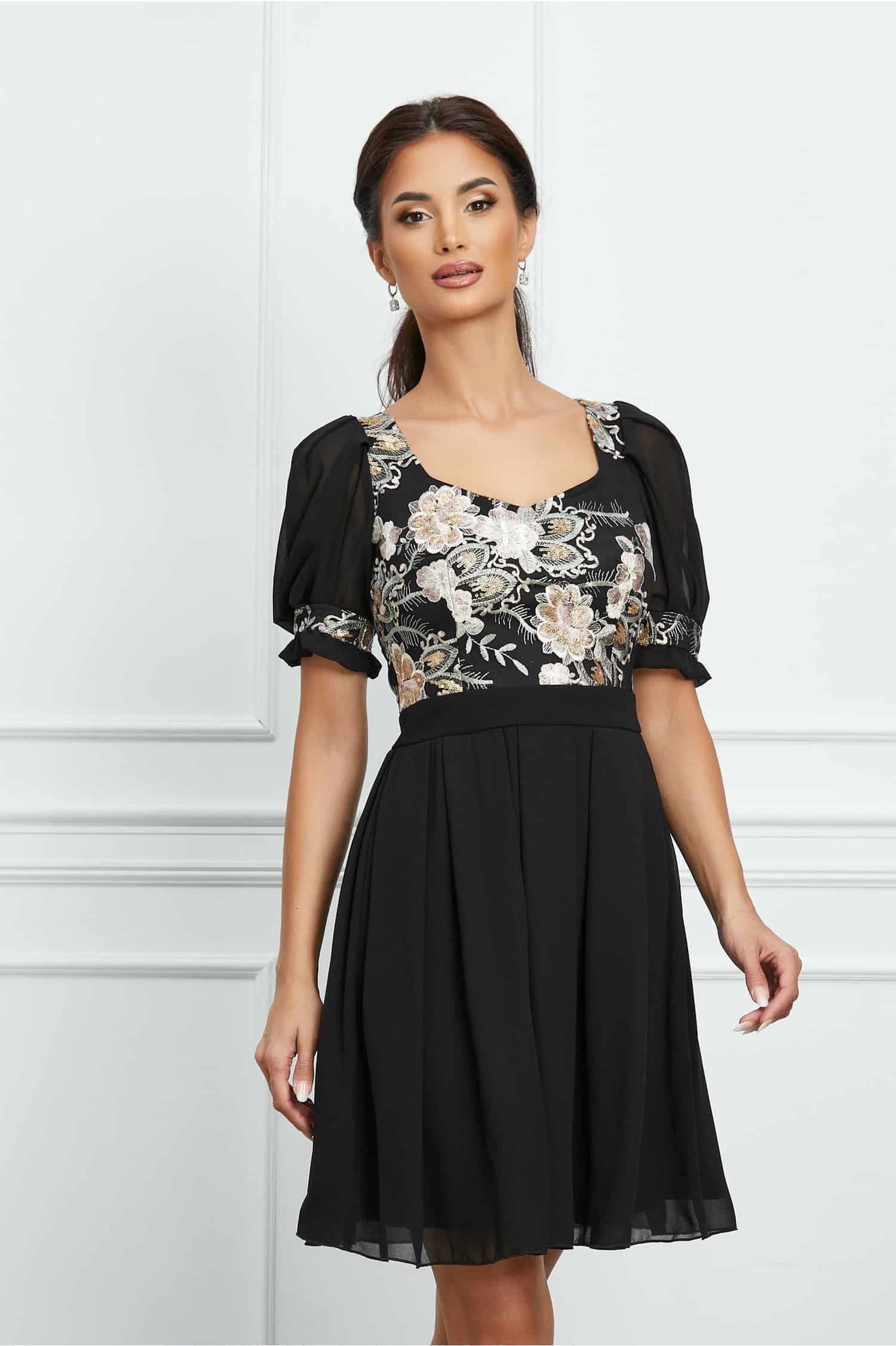 Specification: Rochie Ella Collection Celine neagra din voal cu broderie la bust