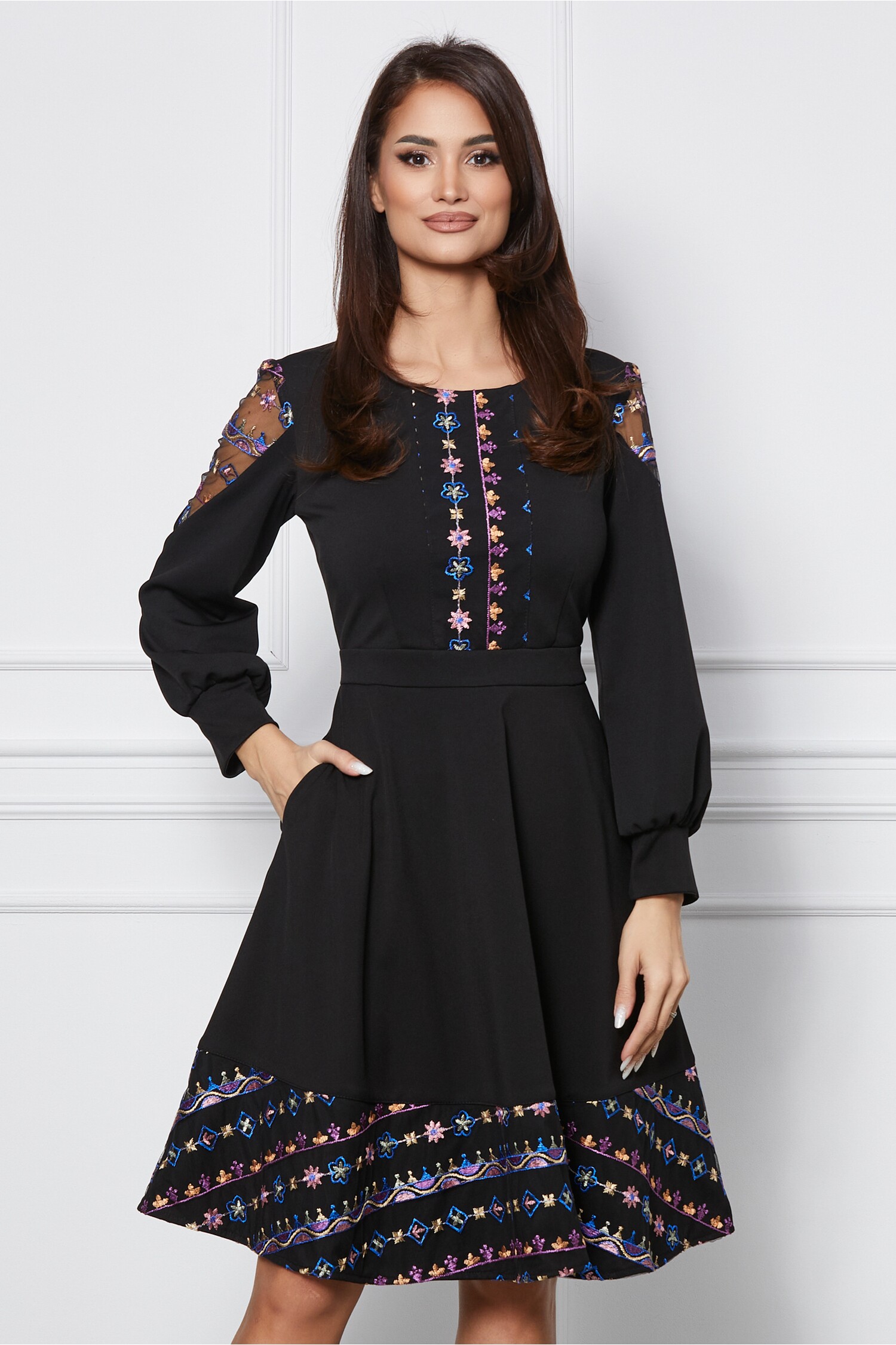 Specification: Rochie Ella Collection Ecaterina neagra cu broderie