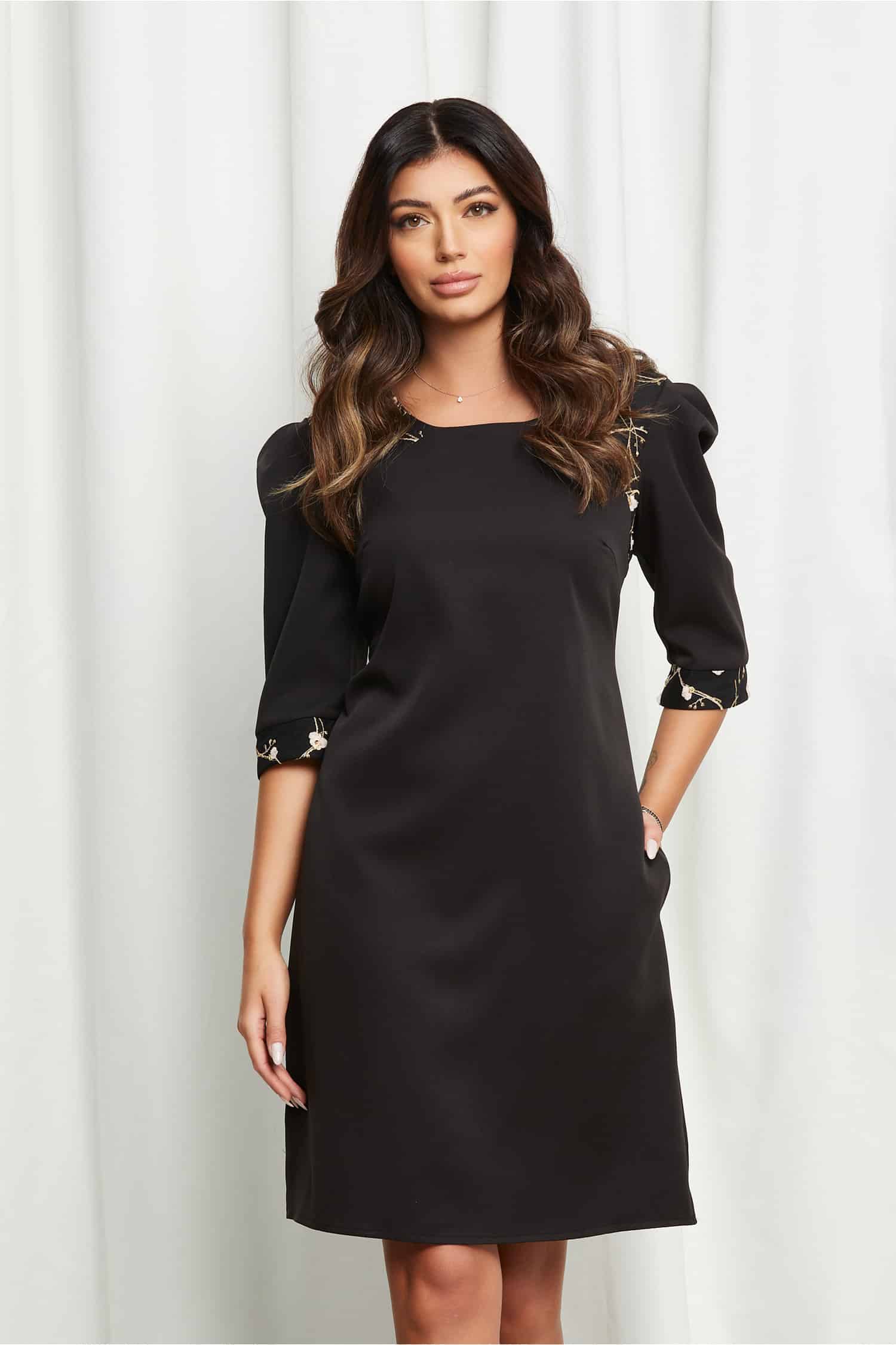 Rochie Ella Collection Naty neagra cu broderie bej ! Transport si retur gratuite indifernet de valoarea comenzii!
