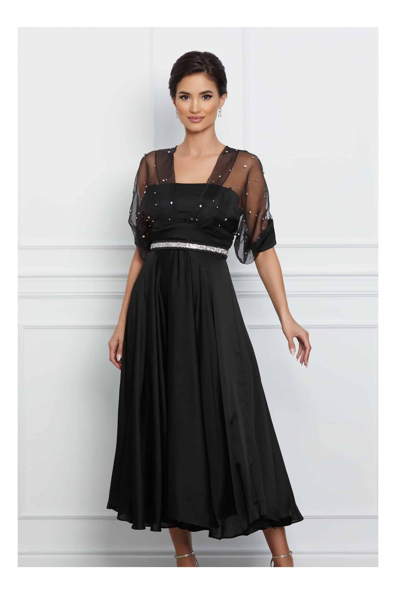 Specification: Rochie Georgiana neagra cu bust din organza si curea in talie
