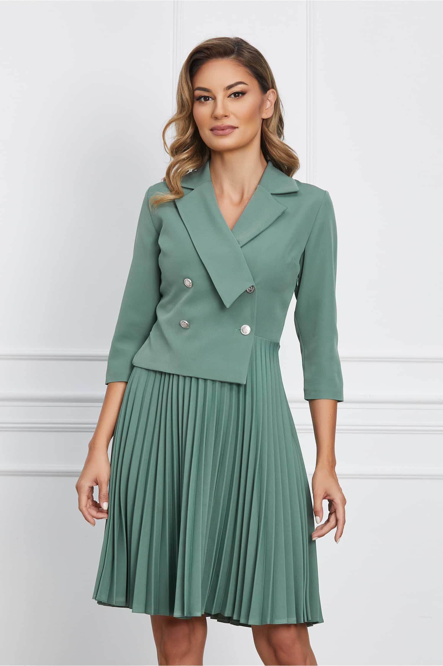Specification: Rochie Jasmine verde mint tip sacou cu pliuri pe fusta