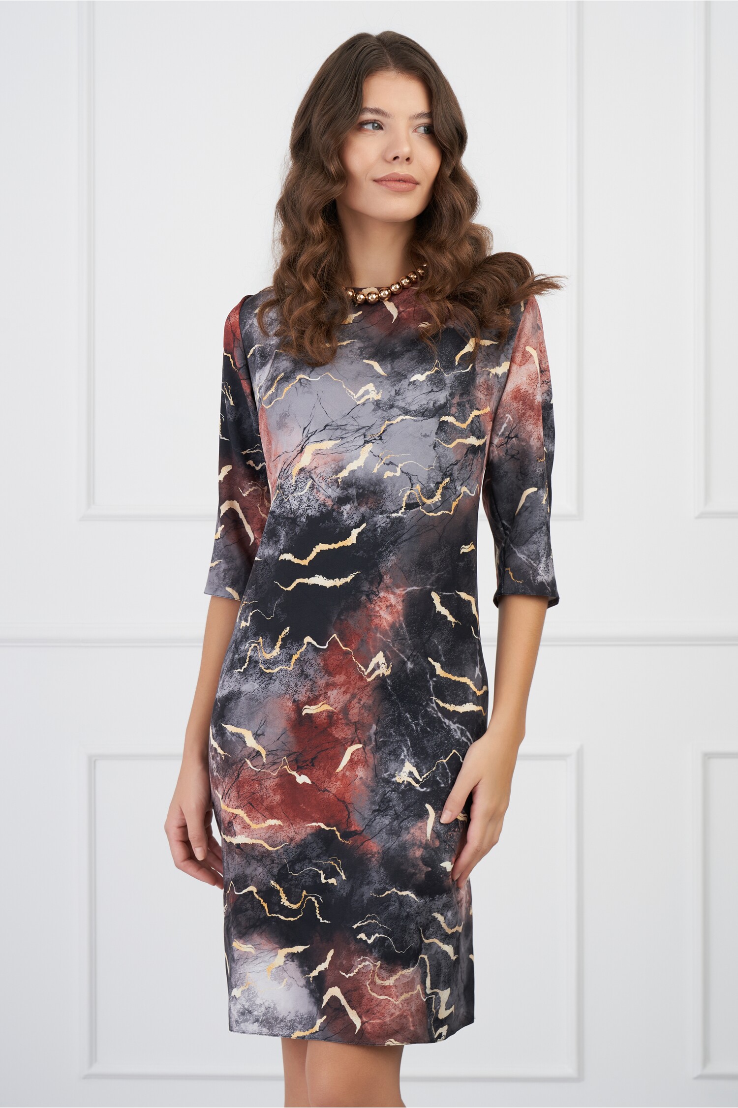 Specification: Rochie Ludmila gri cu imprimeu caramiziu