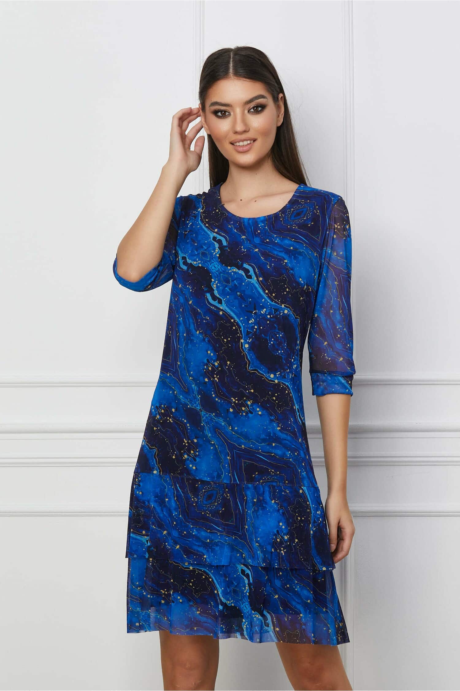 Rochie Marisa vaporoasa albastra cu imprimeu galben ! Transport si retur gratuite indifernet de valoarea comenzii!