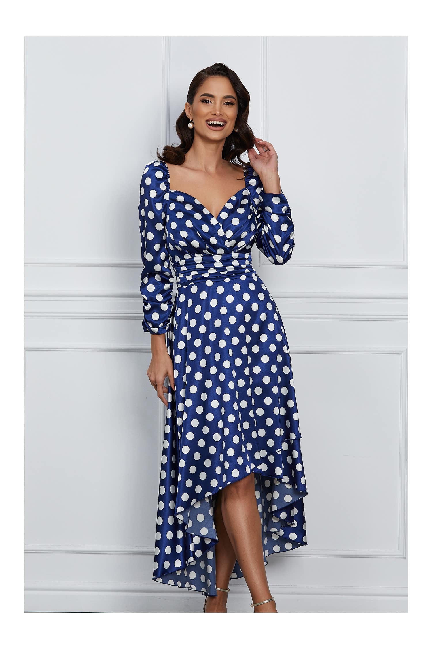 Specification: Rochie MBG bleumarin din satin cu buline albe